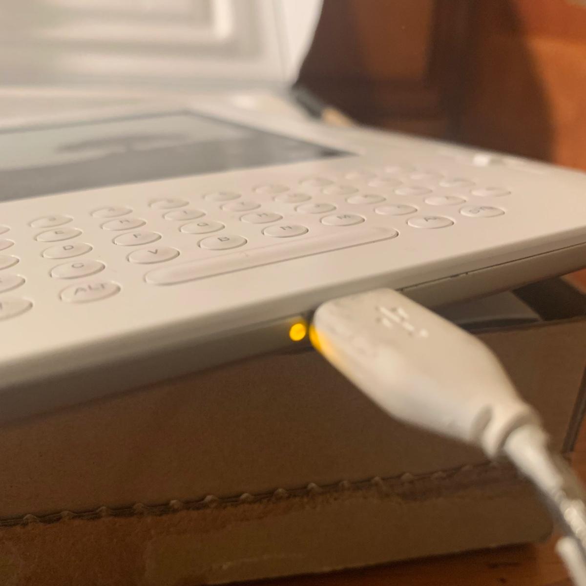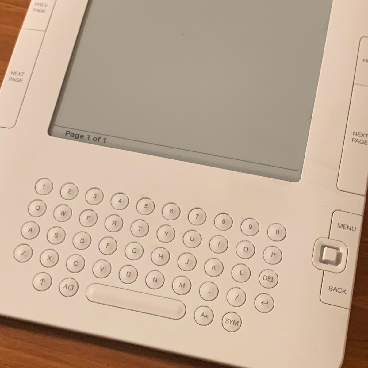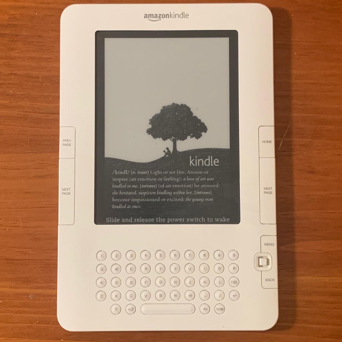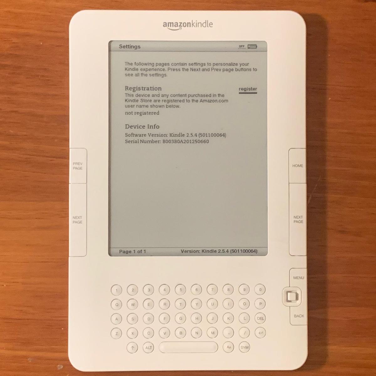 Amazon Kindle comes with its original box and a charger. Kindle is 5.25” x 8”. It has software version 2.5.4. Item powers on and has been factory reset, ready for you to load your winter reading list onto! Charger has some slight damage.