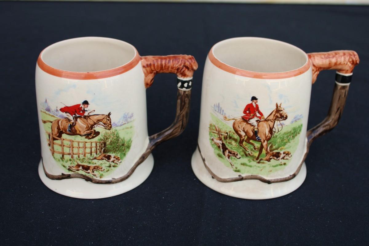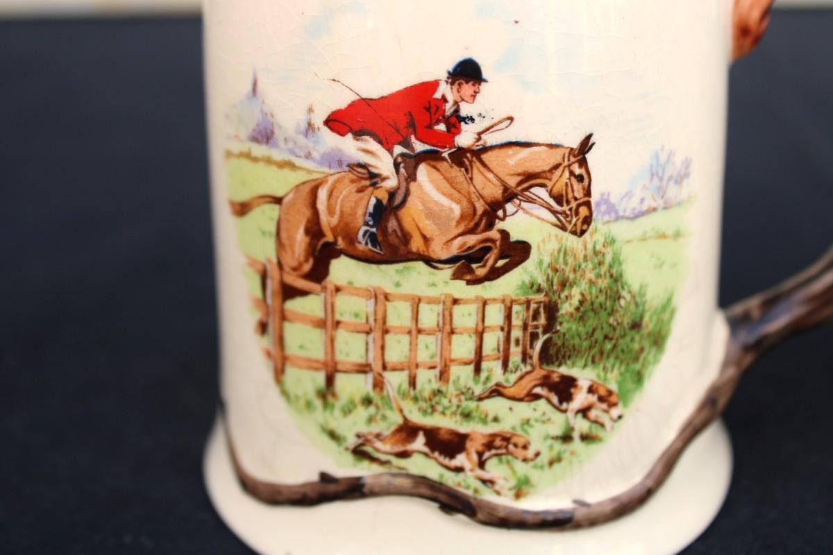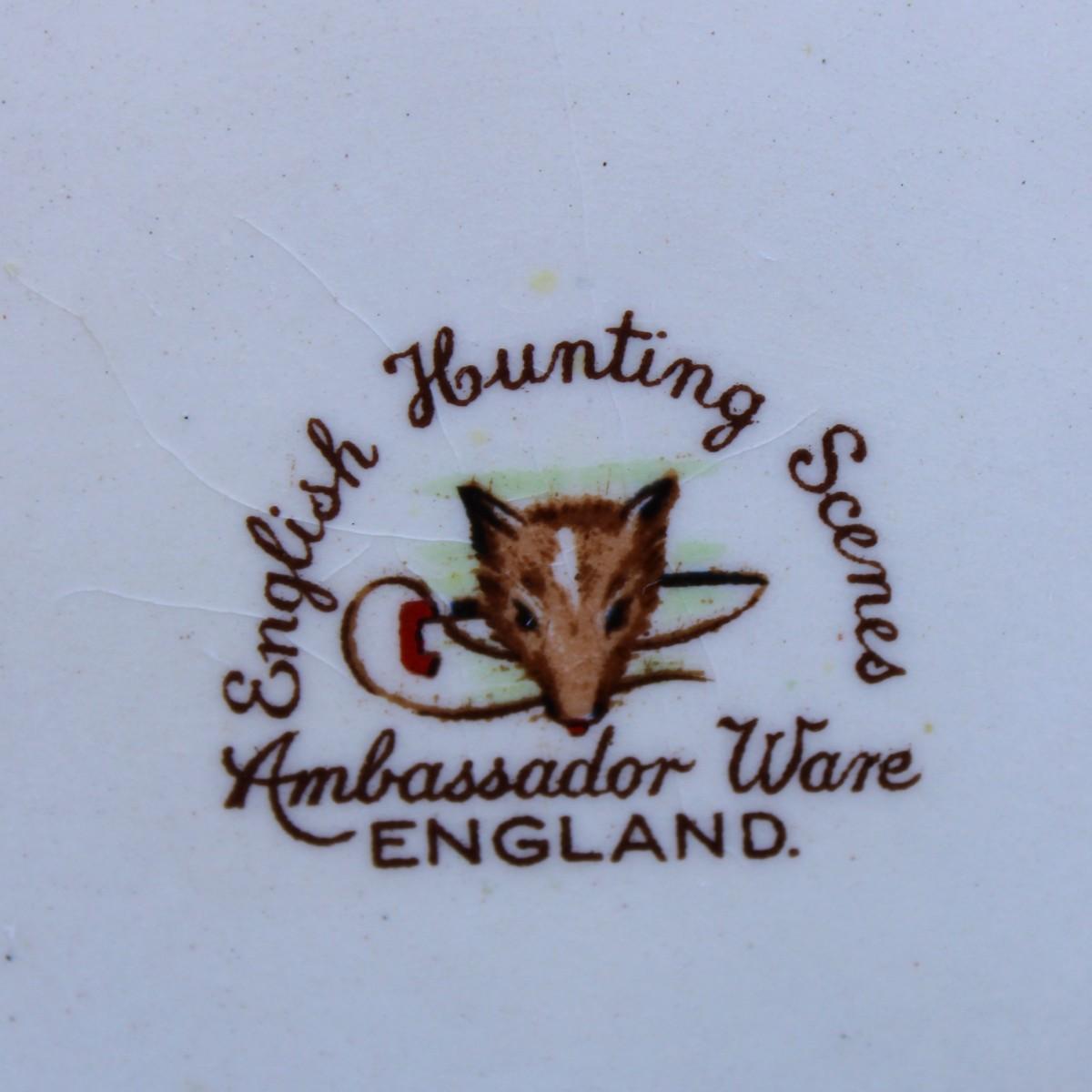 Ambassador Ware England English Hunting Scene with rare handles. Beautiful countryside images.