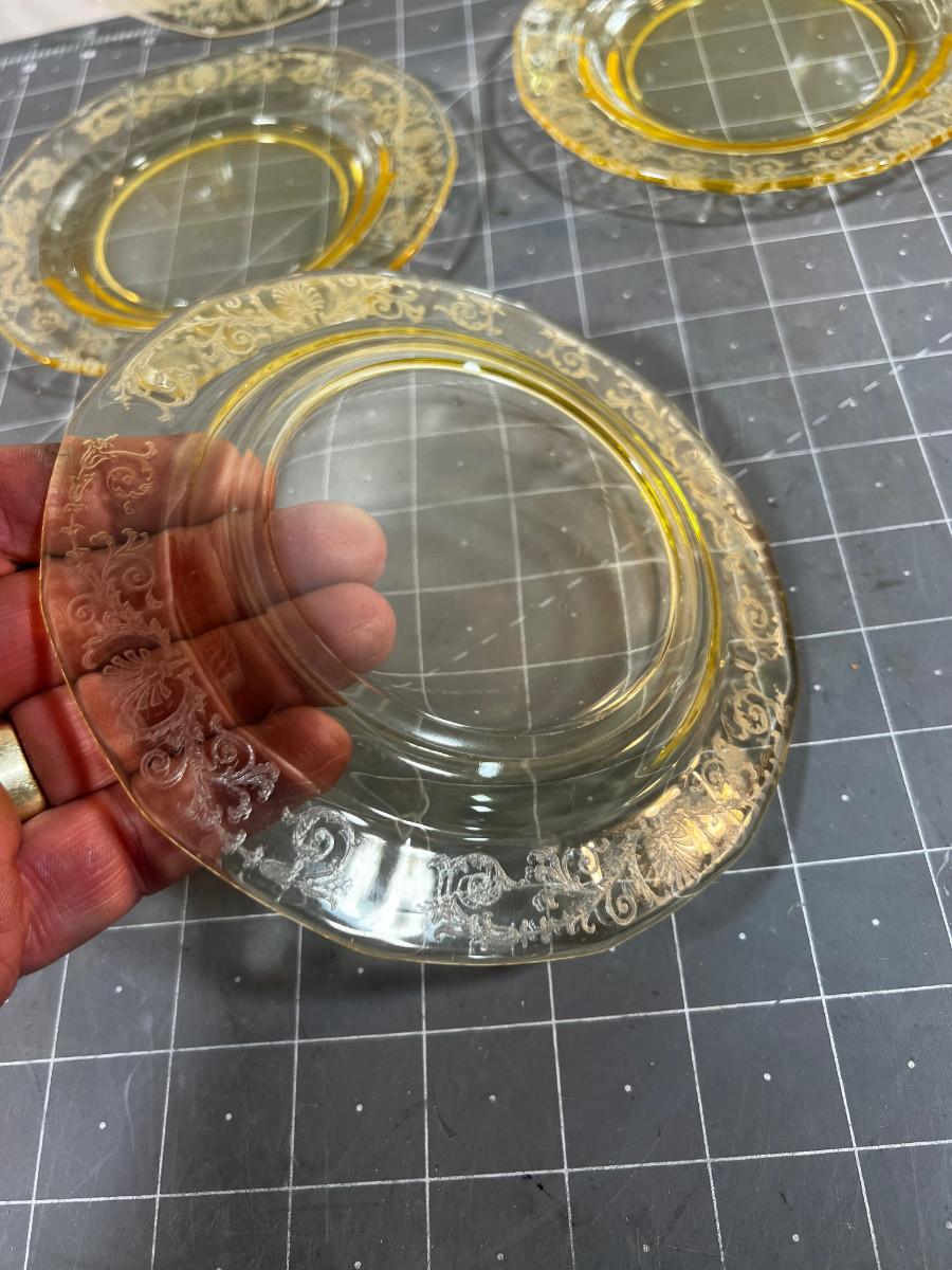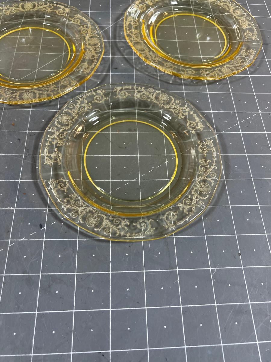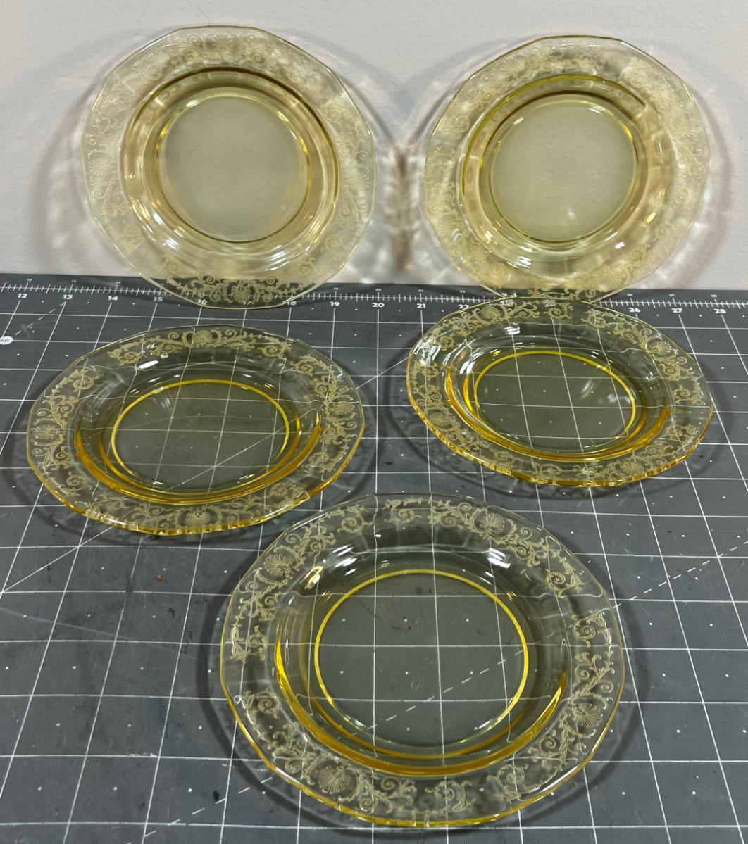 Amber 6" (5) Depression Glass Bread and Butter Plates.
