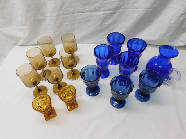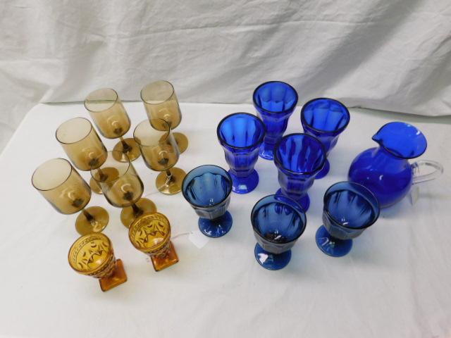 Amber and Blue Glass Items
