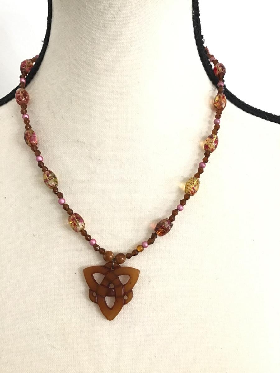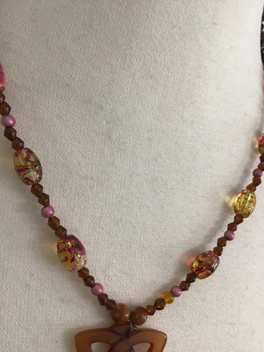 Amber and pink Glass Necklace