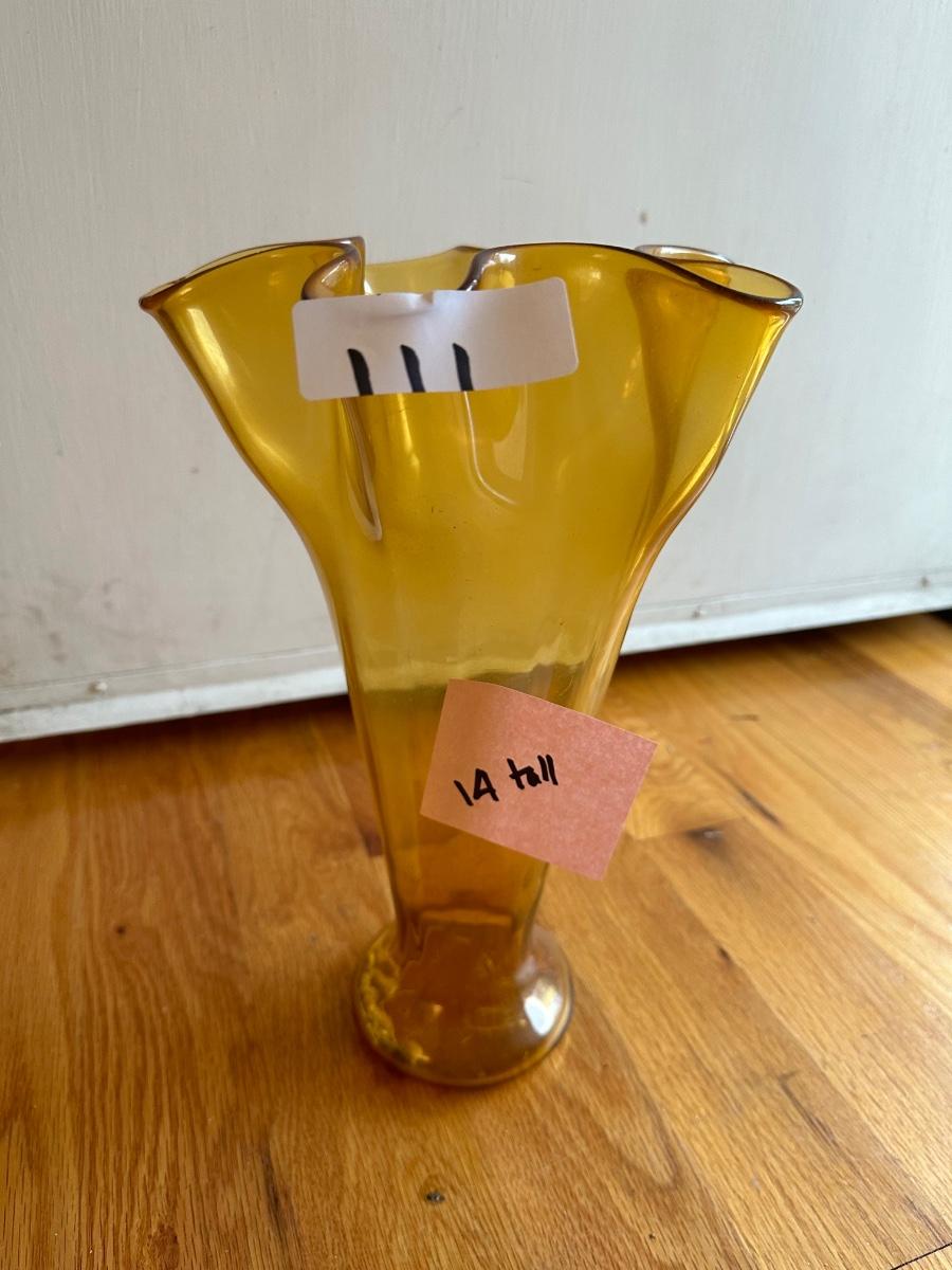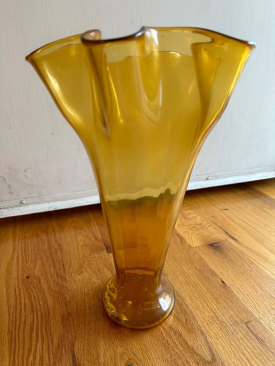 AMBER ART GLASS VASE, 14" TALL, AS PICTURED