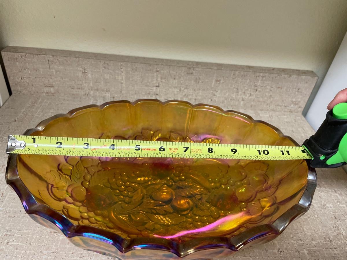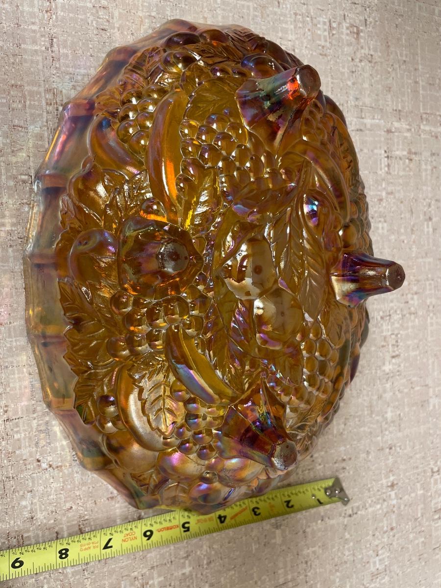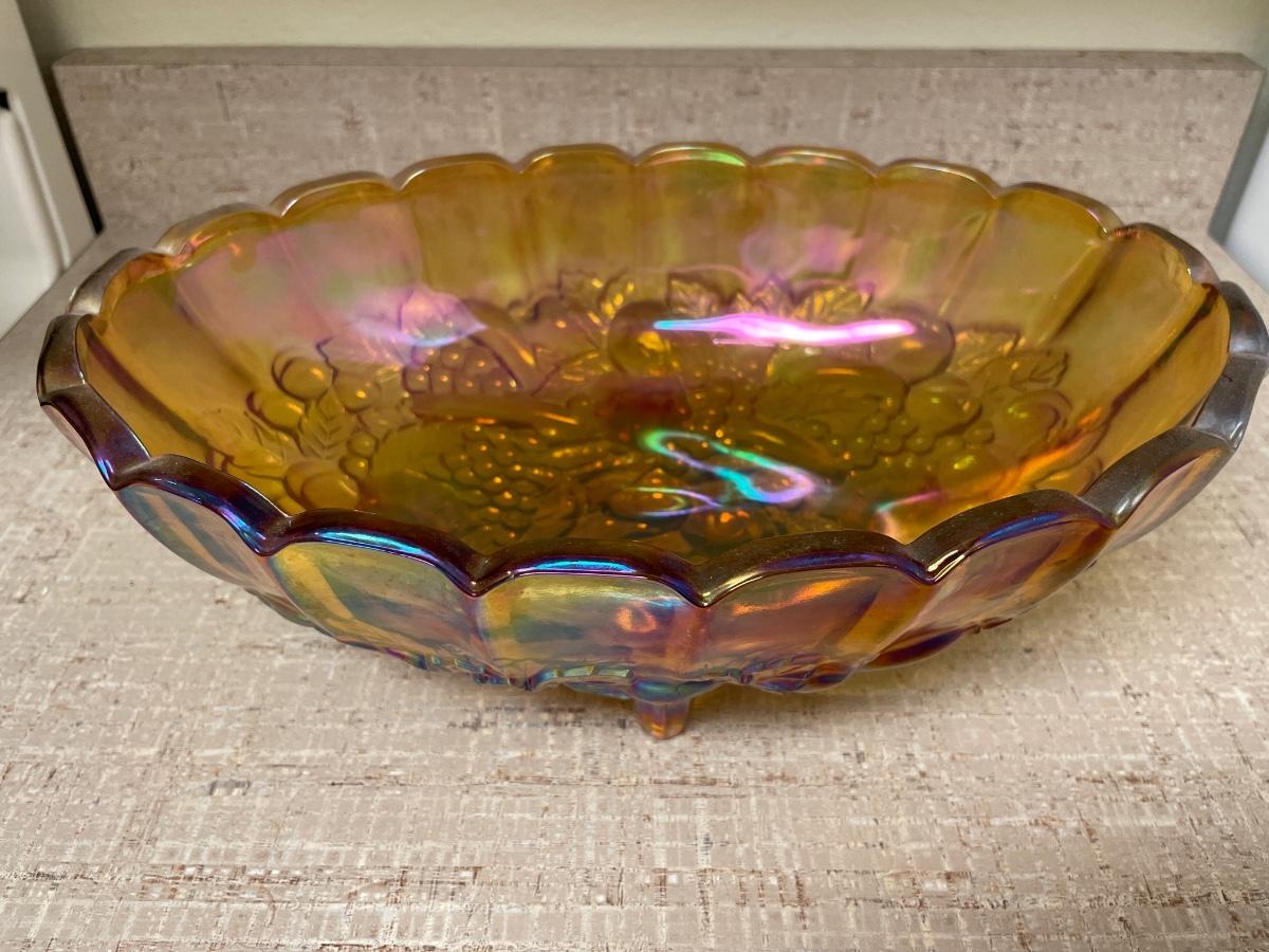 Beautiful Amber carnival glass bowl with leaf pattern on bottom