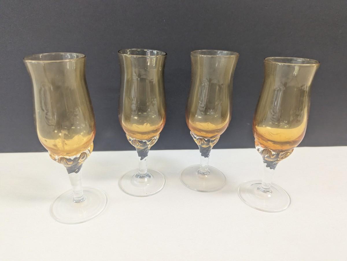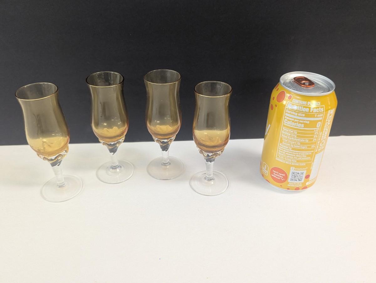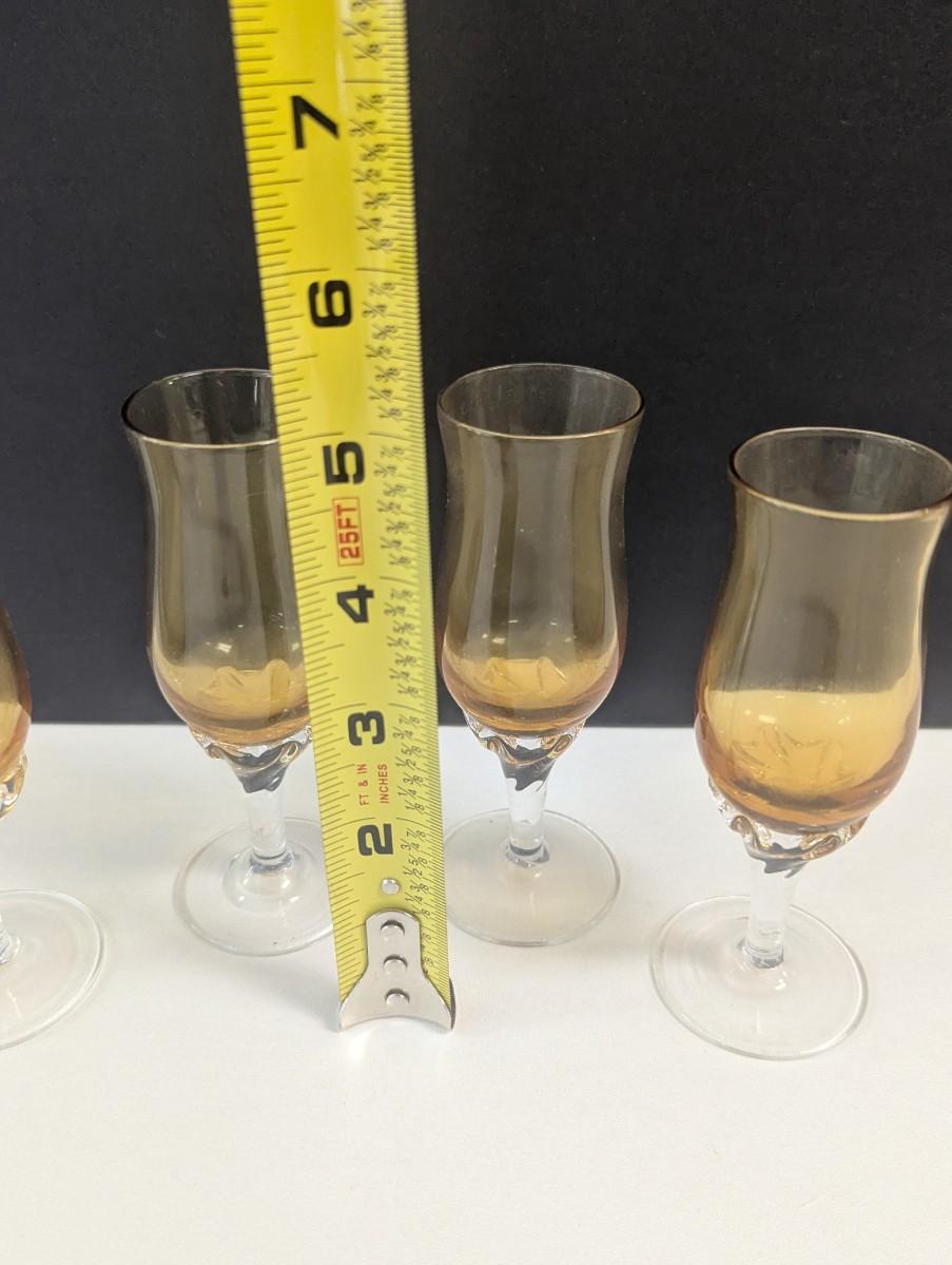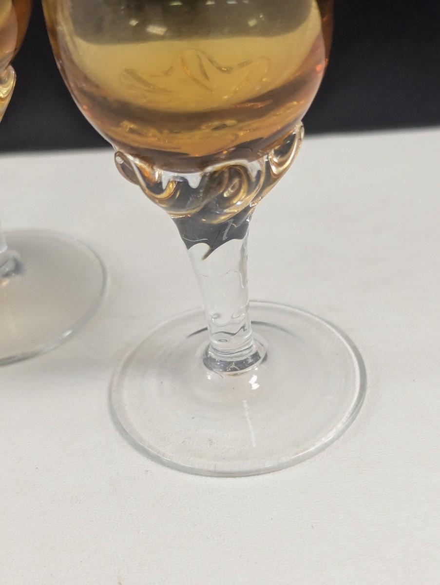 Amber Cordial Aperifit Vintage Stemware Glasses Hand Blown