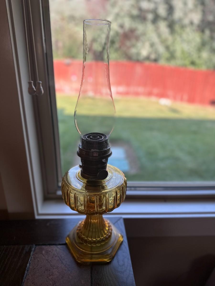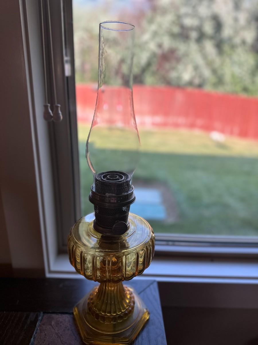 Amber Corinthian Glass Oil Lamp