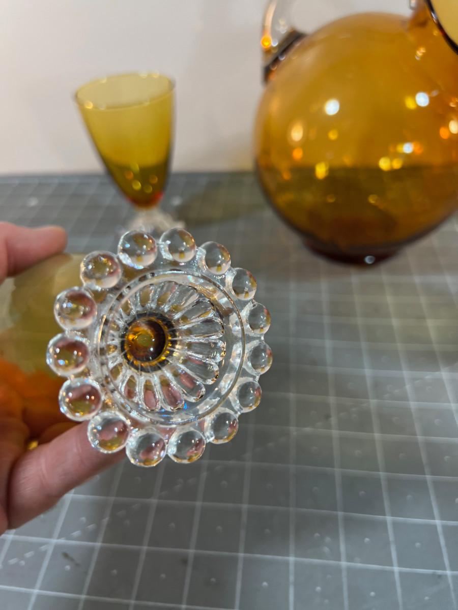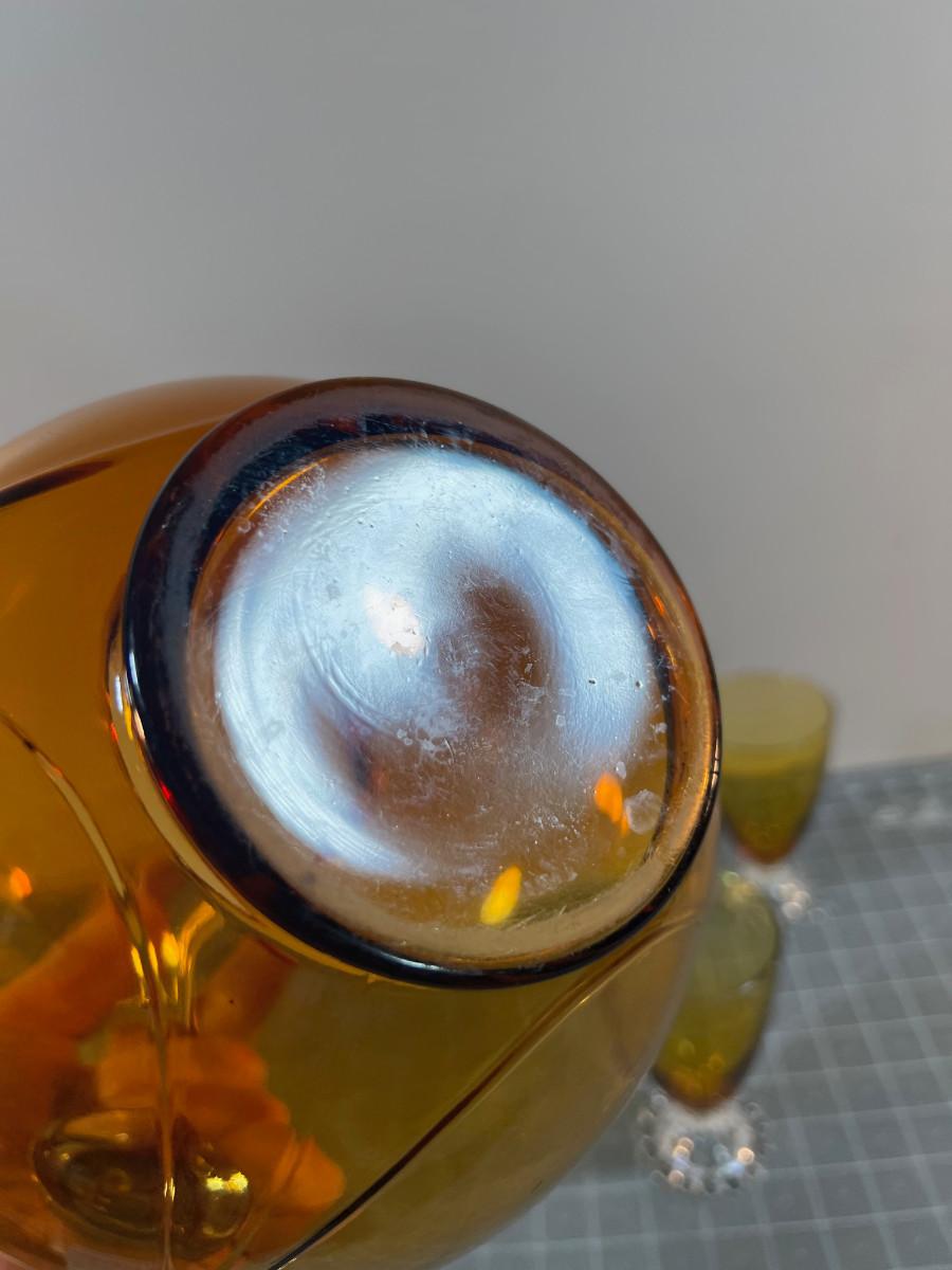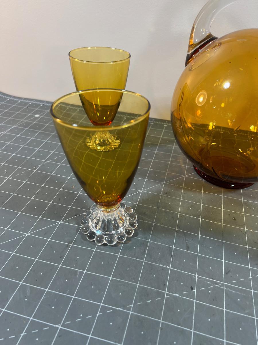 AMBER GLASS Ball Jug Pitcher and 4 Tumblers