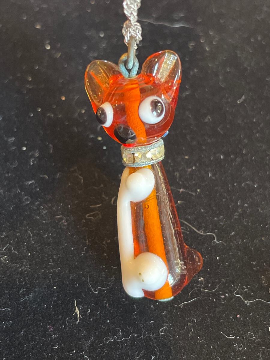 Amber glass cat has a rotating head and is one of the most unique pendants I have ever seen!