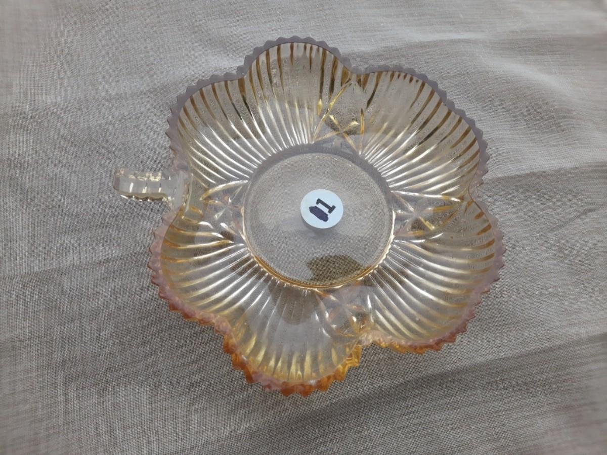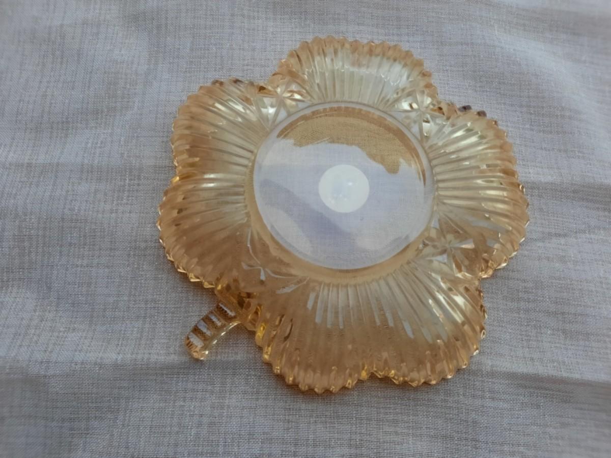 AMBER GLASS CLOVER DISH RIBBED PATTERN