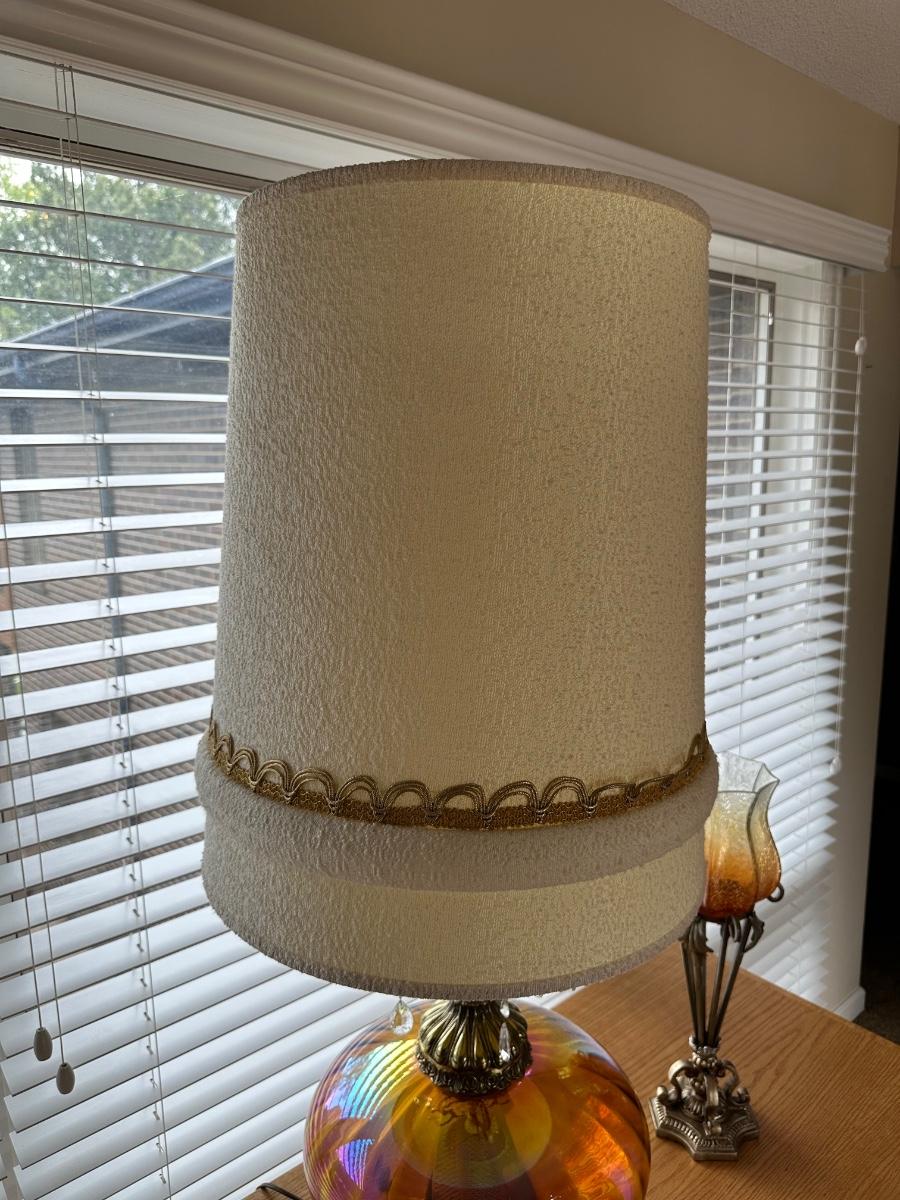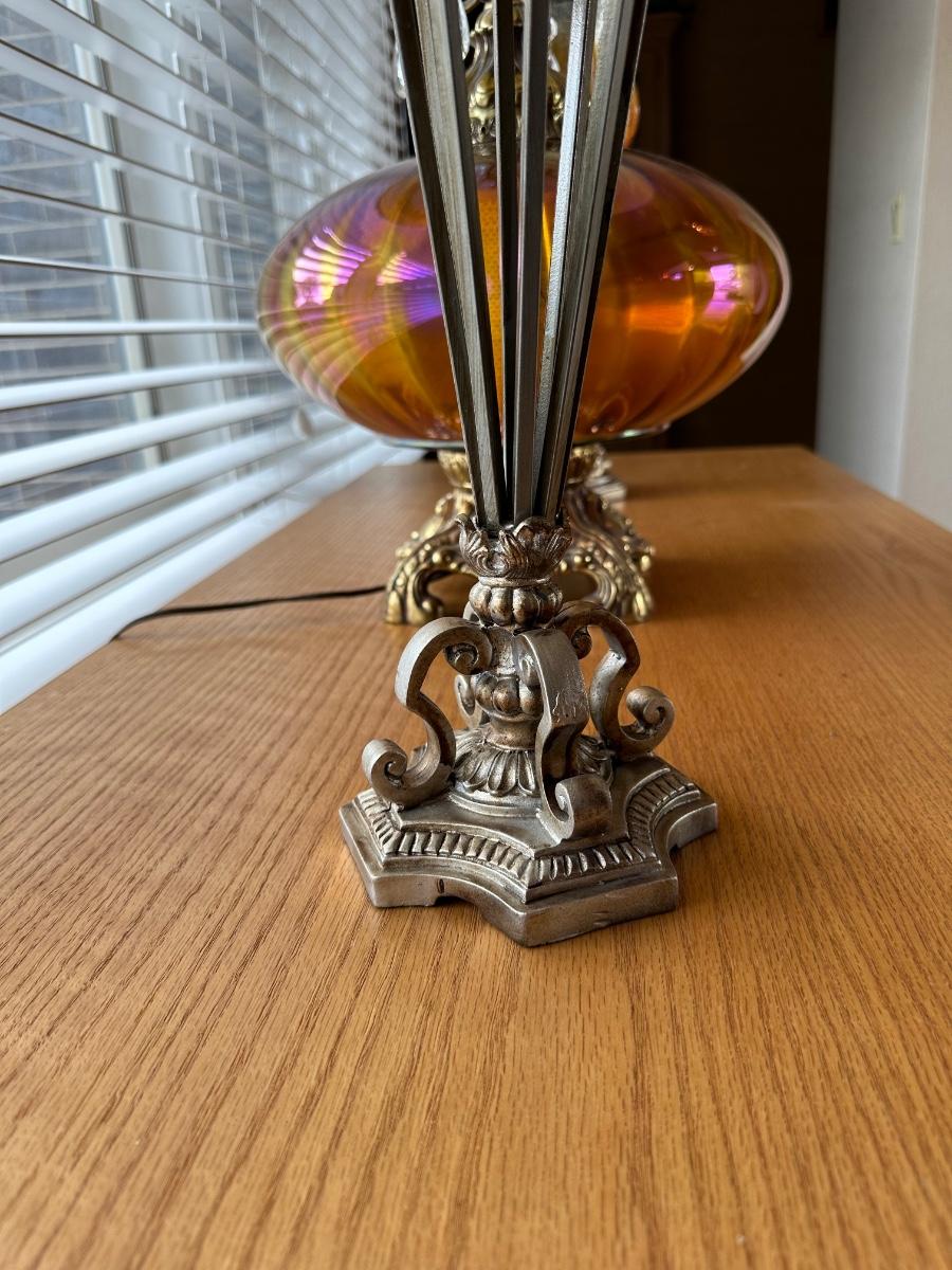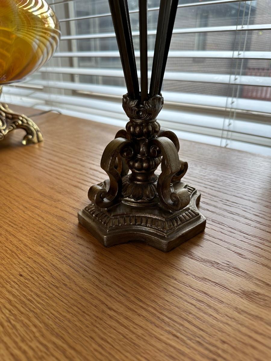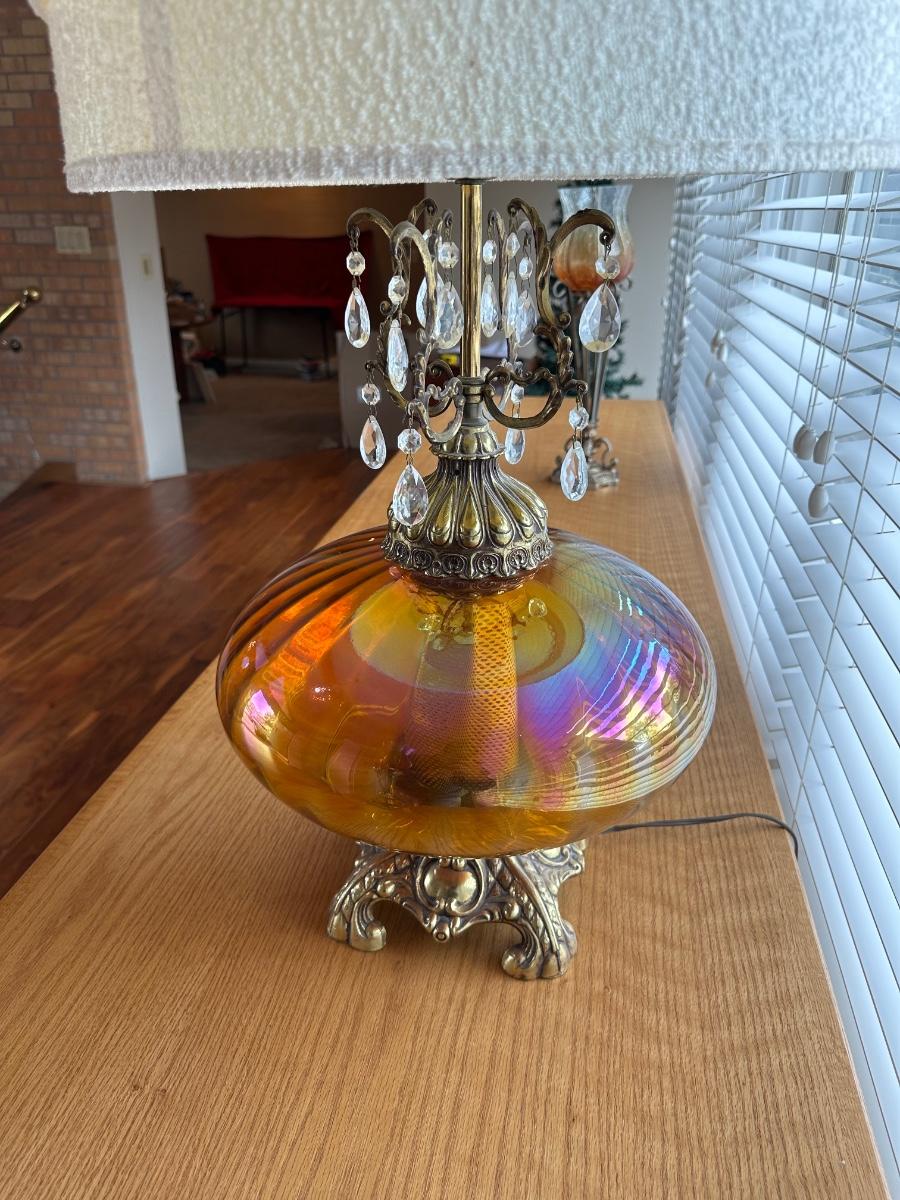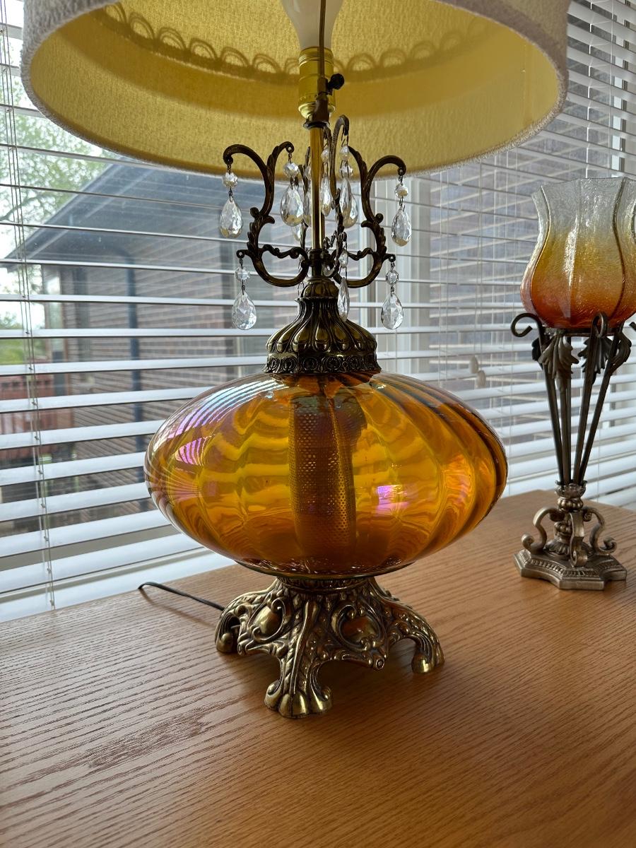 AMBER GLASS LAMP AND CRACKLE GLASS CANDLE HOLDERS