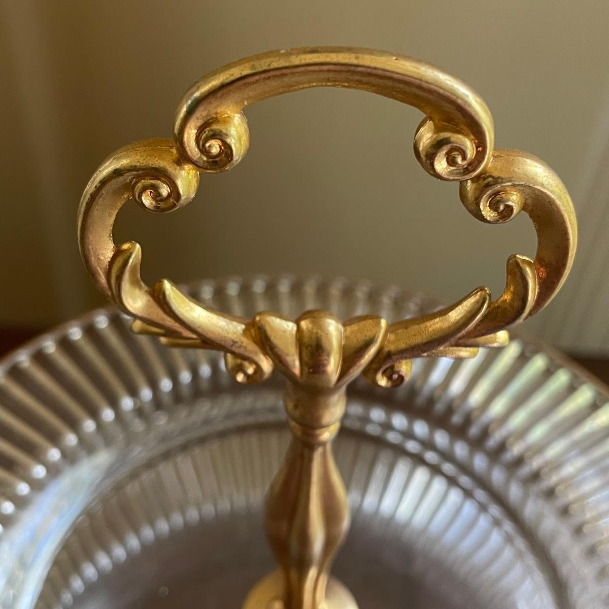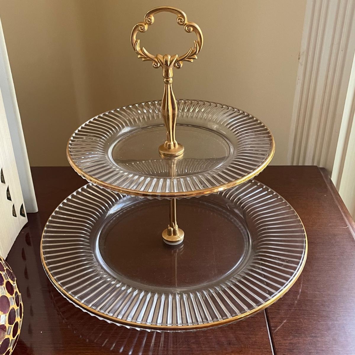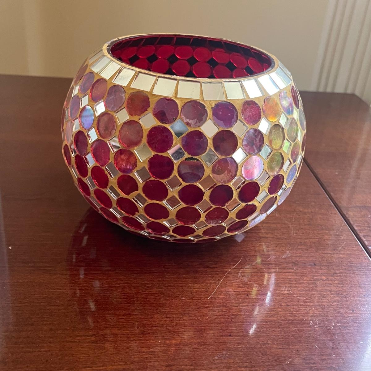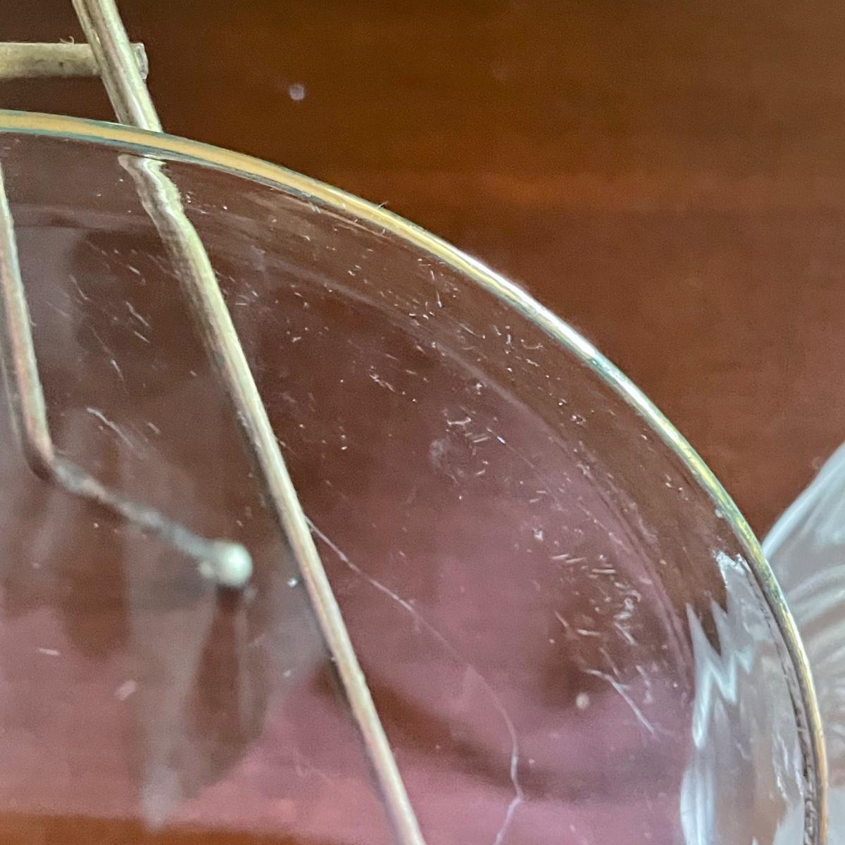 Nine items includes a small glass plate with gold colored rim that comes with a similarly colored plate stand, an amber lidded glass dish, bowl with swans, a shimmering red and silver colored bowl that is glass with mirrors on the outside and various glass perfume bottles and more. Note the glass swan has a small chip in its wing, seem image; all other items are in good condition, book has some stains, see images.
