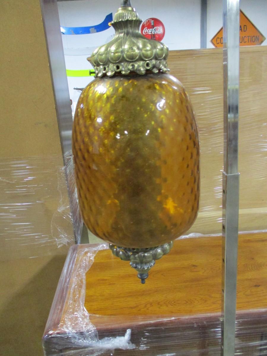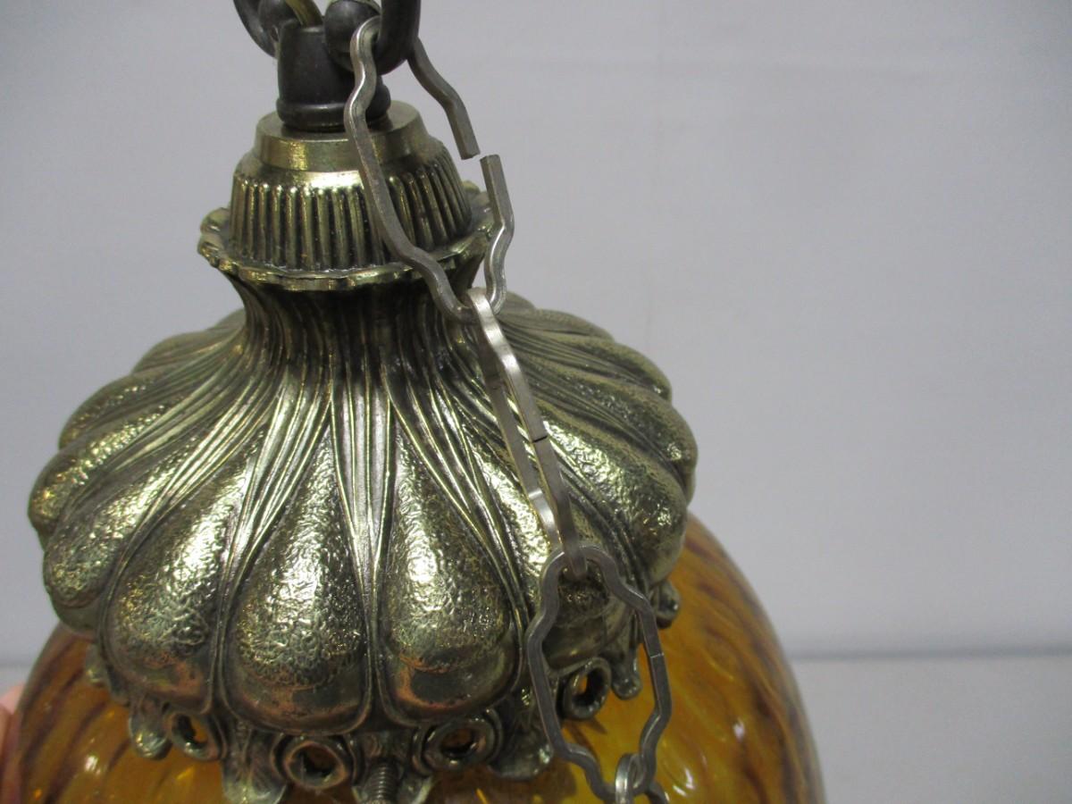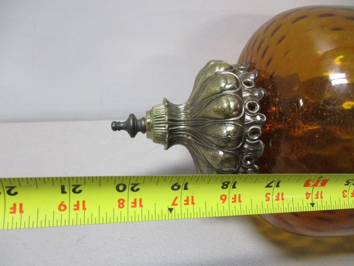 Vintage Regency Amber Globe Hanging Lamp Light Diffuser Metal Accents