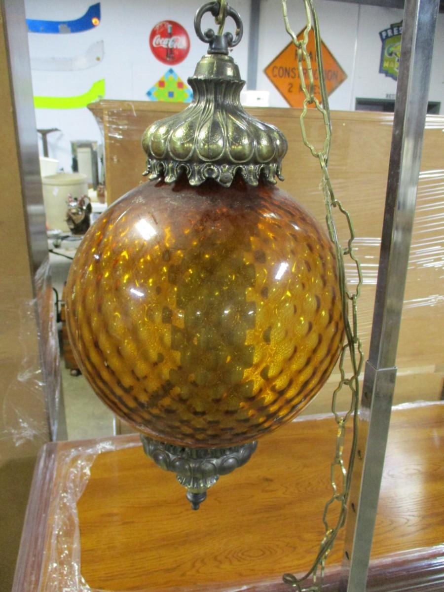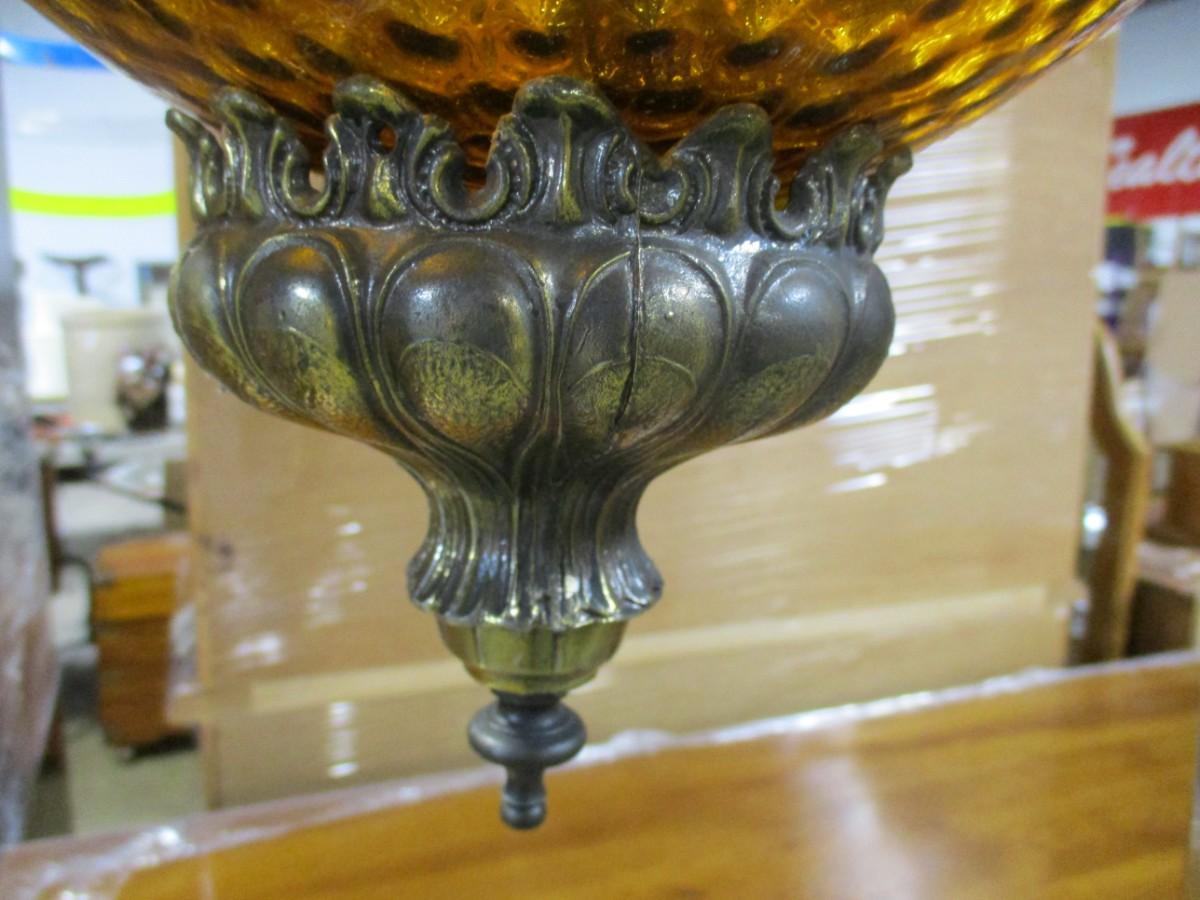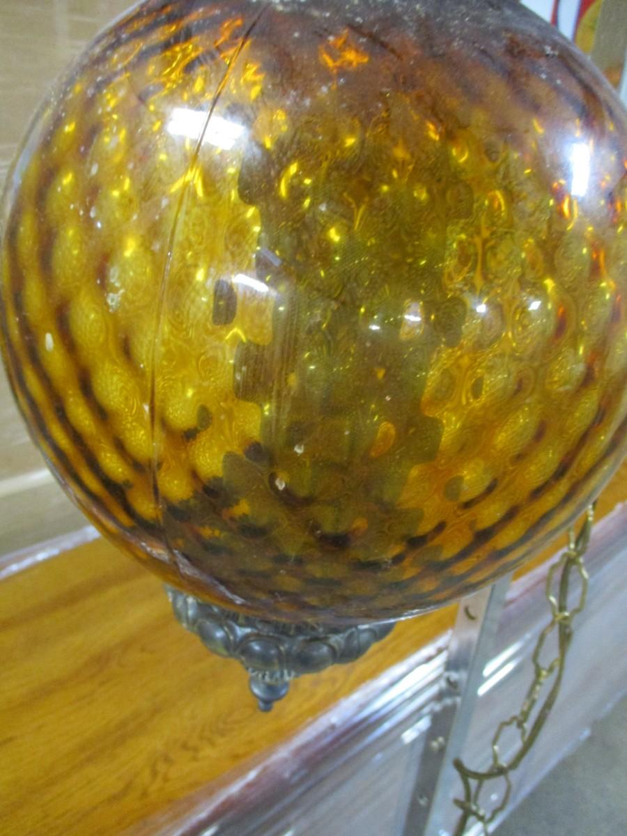 Vintage Regency Amber Globe Hanging Lamp Light Diffuser Metal Accents