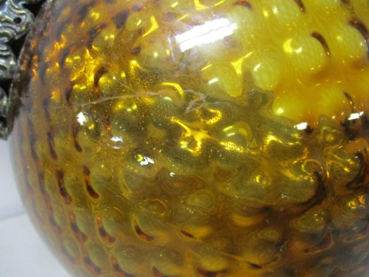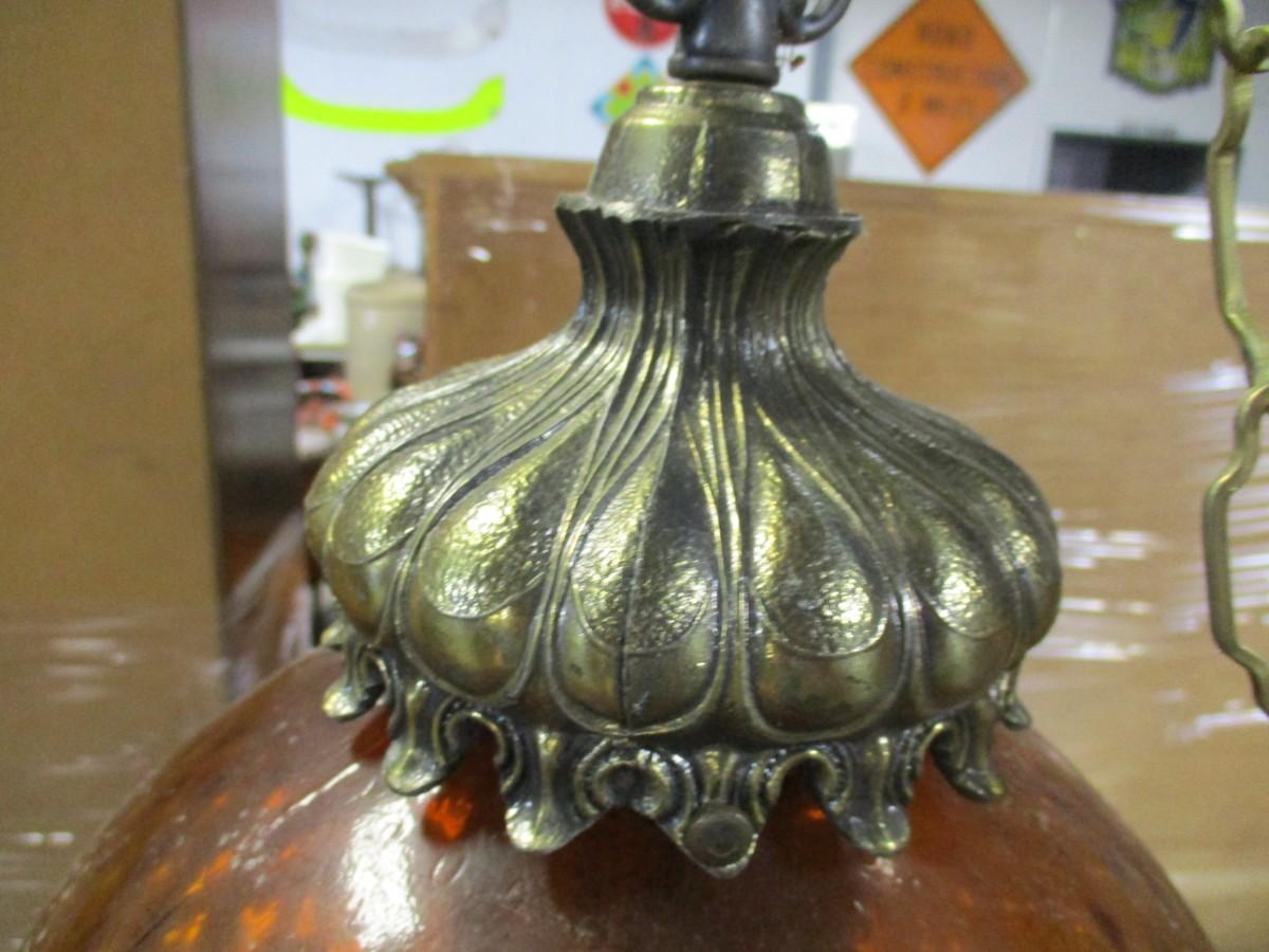 Amber Globe Hanging Lamp Light Diffuser Metal Accents