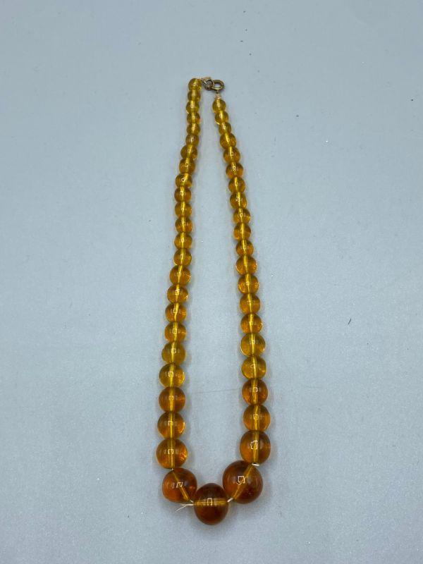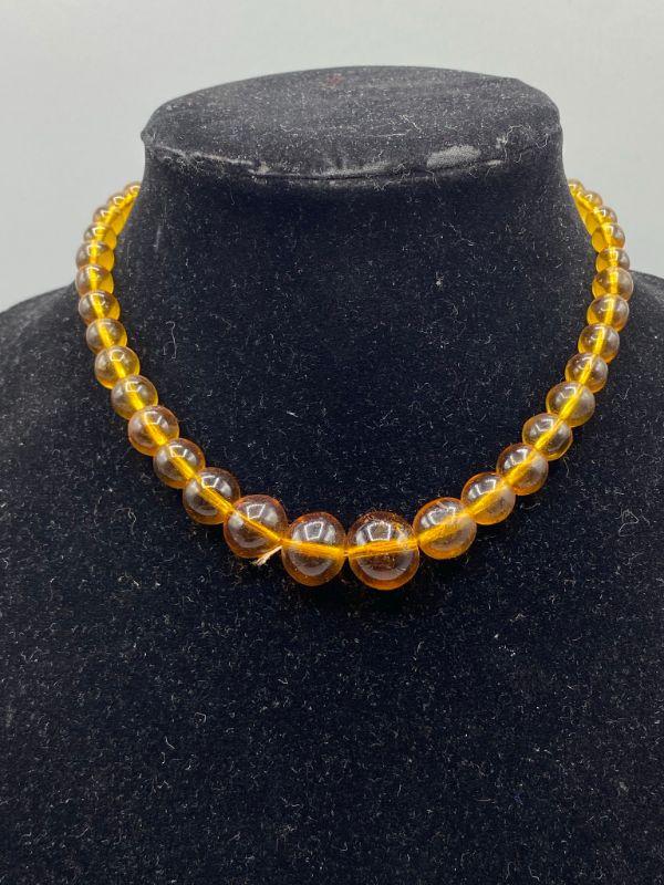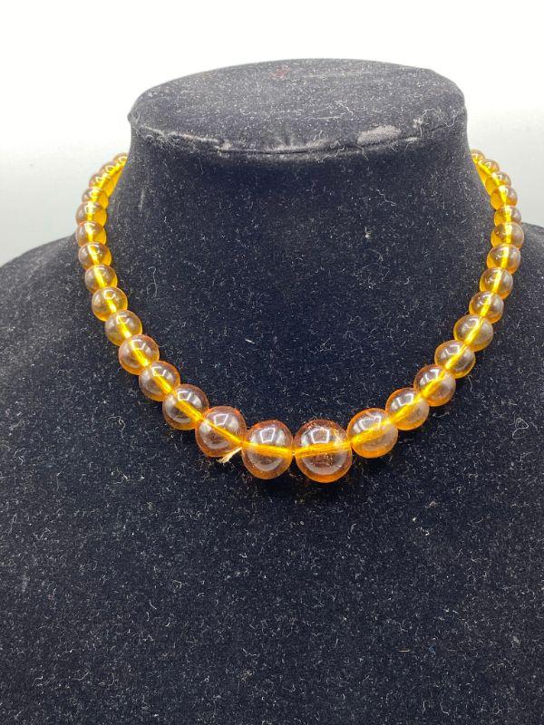 Vintage choker style glass bead necklace. Amber gold beads, graduate in size. Thread is starting to fray, may need to be restrung.