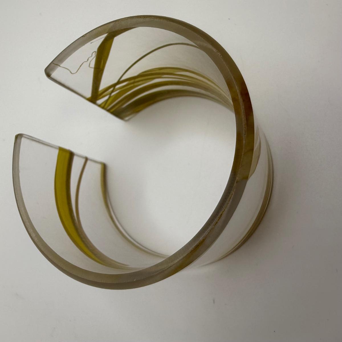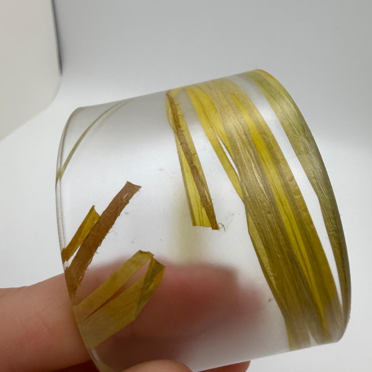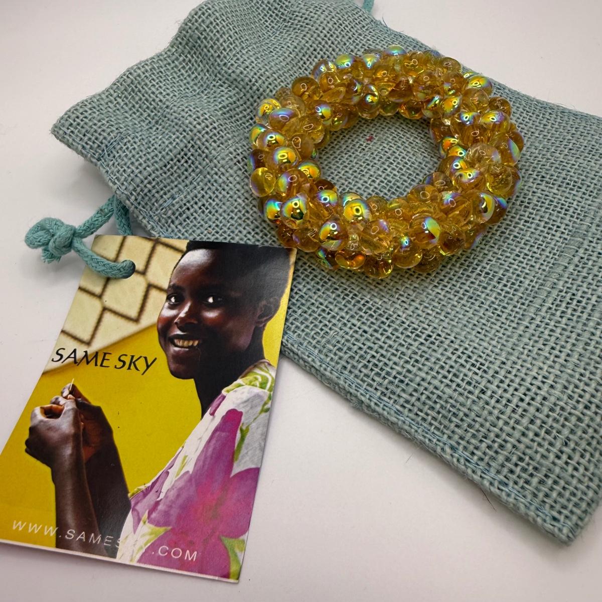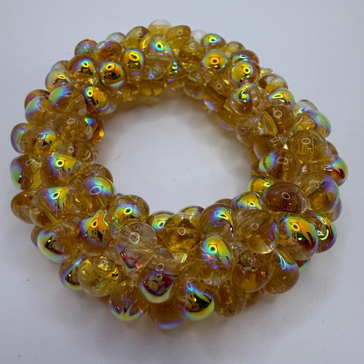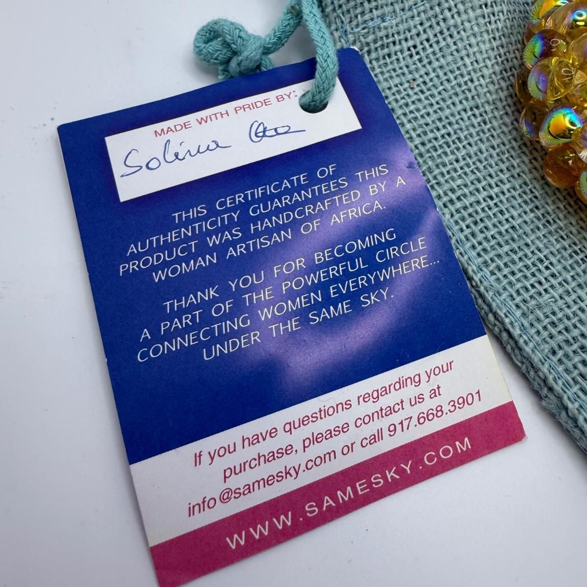 A collection of lovely amber-toned jewelry, including a couple items that appear to have real amber. Three necklaces, two pairs of earrings for pierced ears, and six bracelets. One necklace and one bracelet are stamped ‘Antica Murrina’. The necklace with the multi-color amber stones is stamped 925. And the third with the glass bead is labeled ‘Monet’. Bracelets include Bakelite, leather, iridescent beads, and the translucent cuff appears to have real natural material inside. Please note that one earring back is missing.