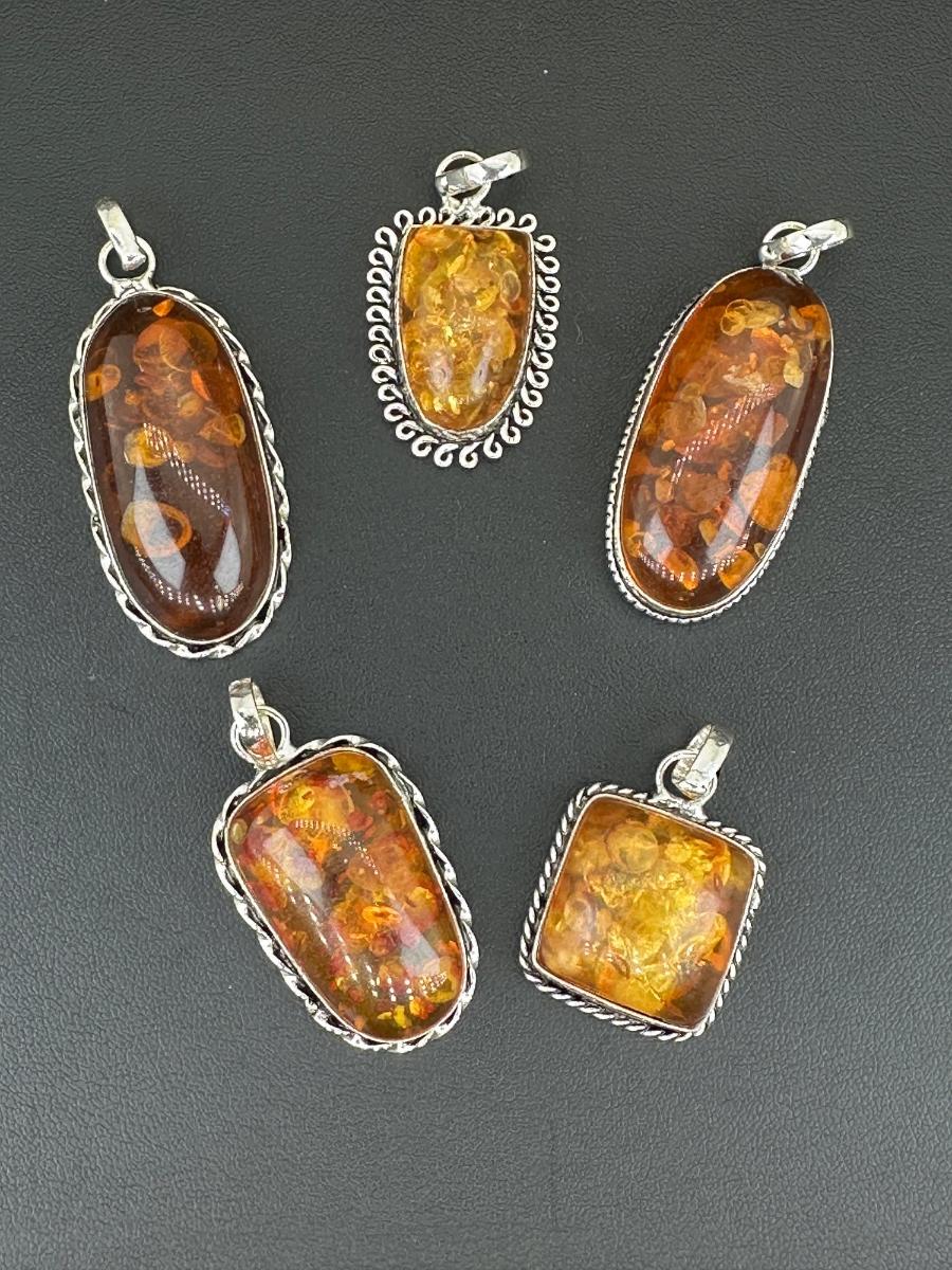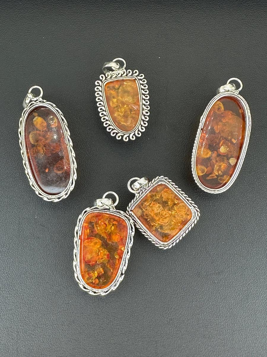 1. Amber Pendant 925 Sterling Silver Plated Handmade Gemstone -No chain_x000D_