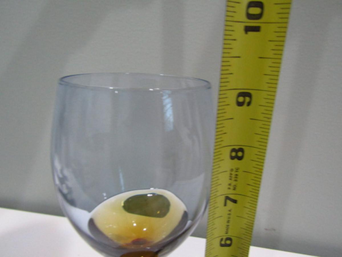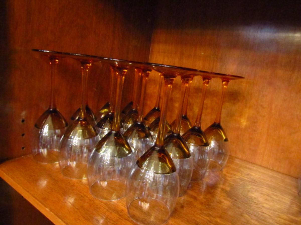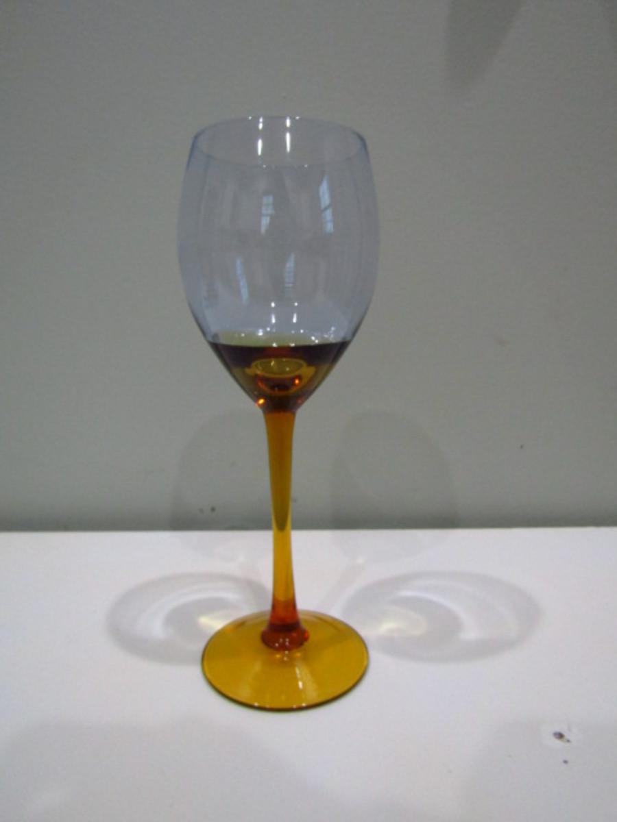 Amber Stemmed Wine Glasses (DR). Two different sizes. Red wine (9 1/2" tall)- 22 pcs. White wine (9" tall)- 23 pcs.