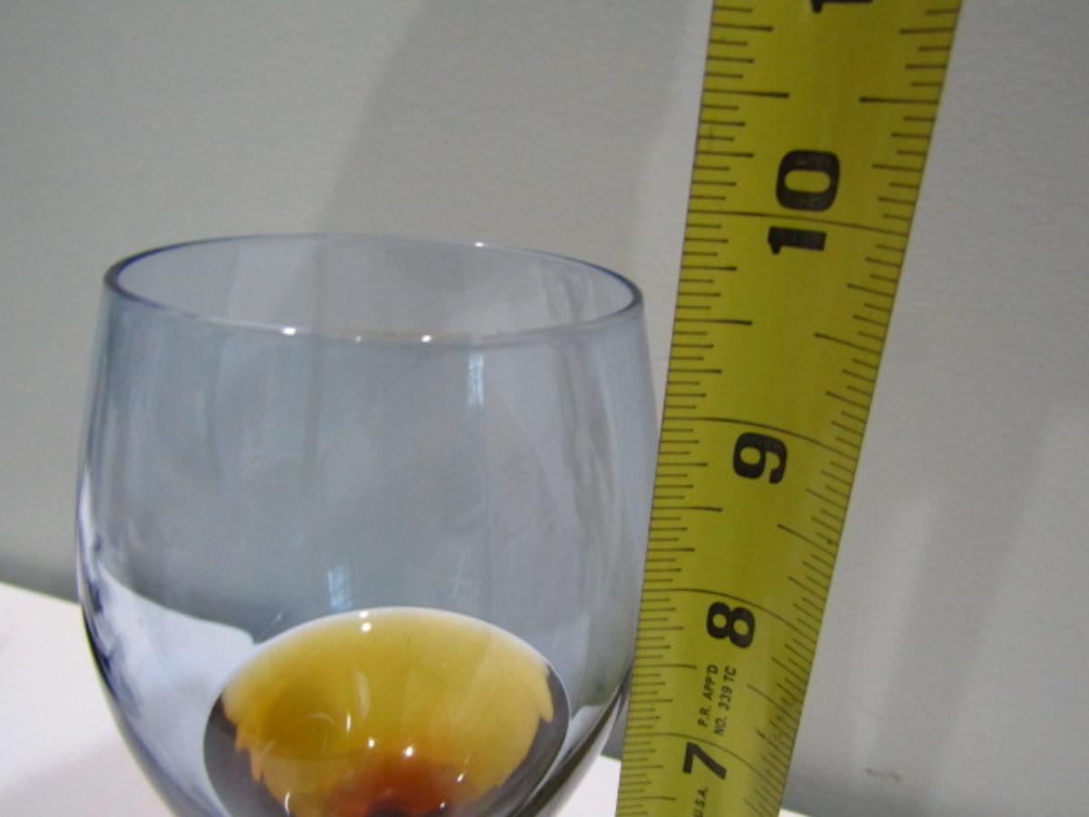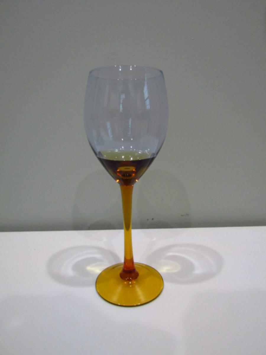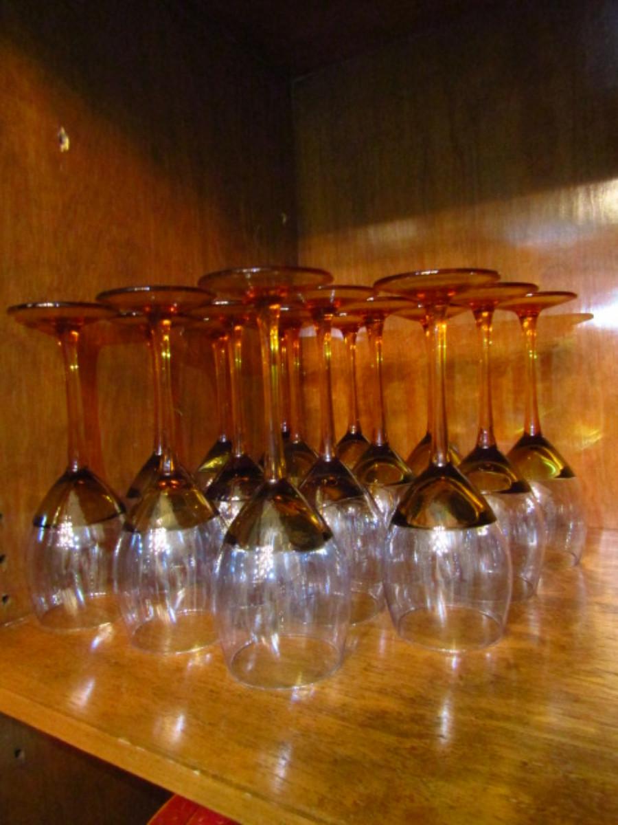 Amber Stemmed Wine Glasses (DR). Two different sizes. Red wine (9 1/2" tall)- 22 pcs. White wine (9" tall)- 23 pcs.