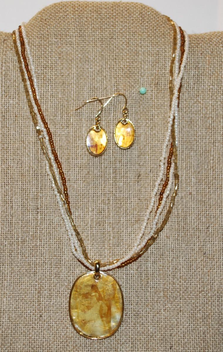 Amber Styled Necklace (16" L) and Matching Hoop Earrings Set