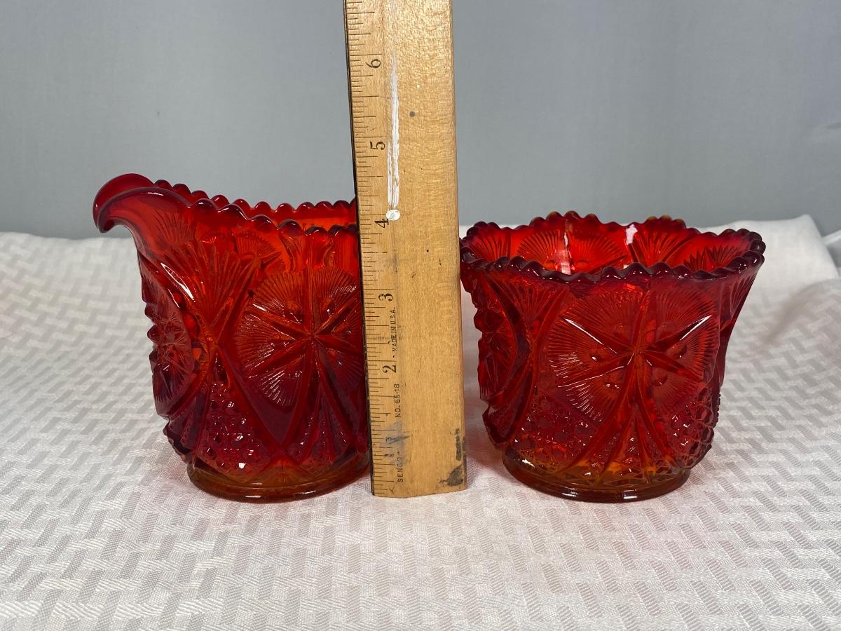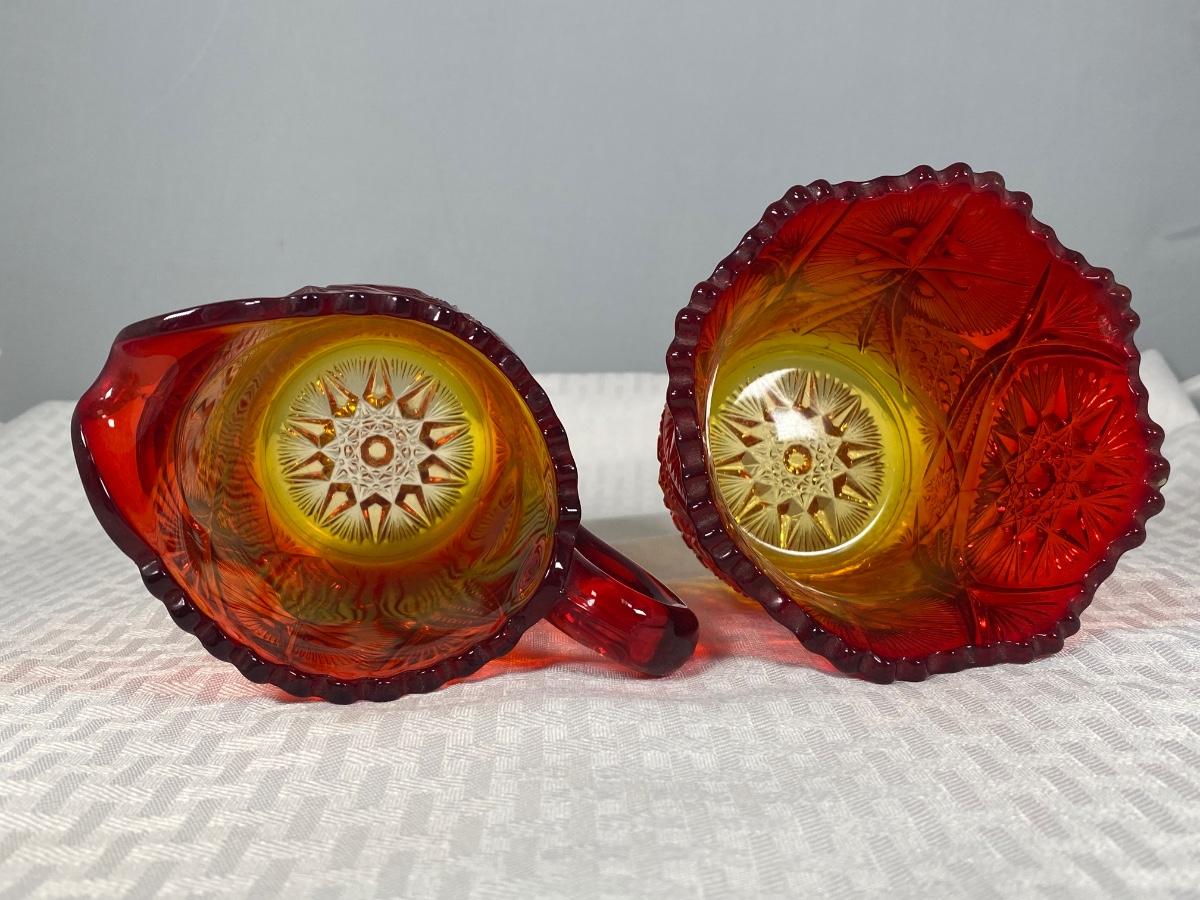 Amberina Red Orange Yellow Flame Depression Glass Cream & Sugar Set