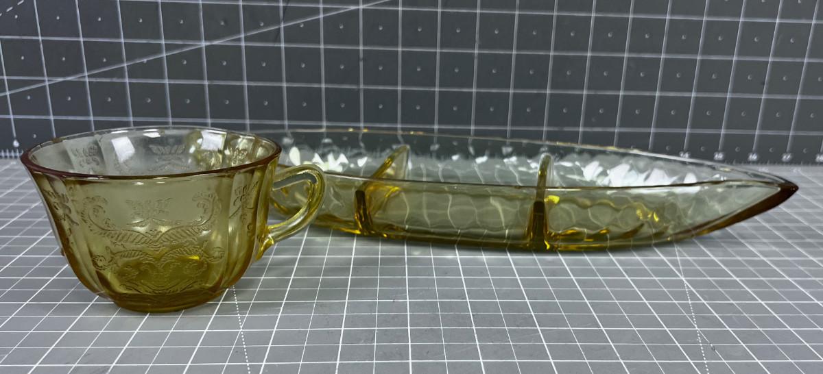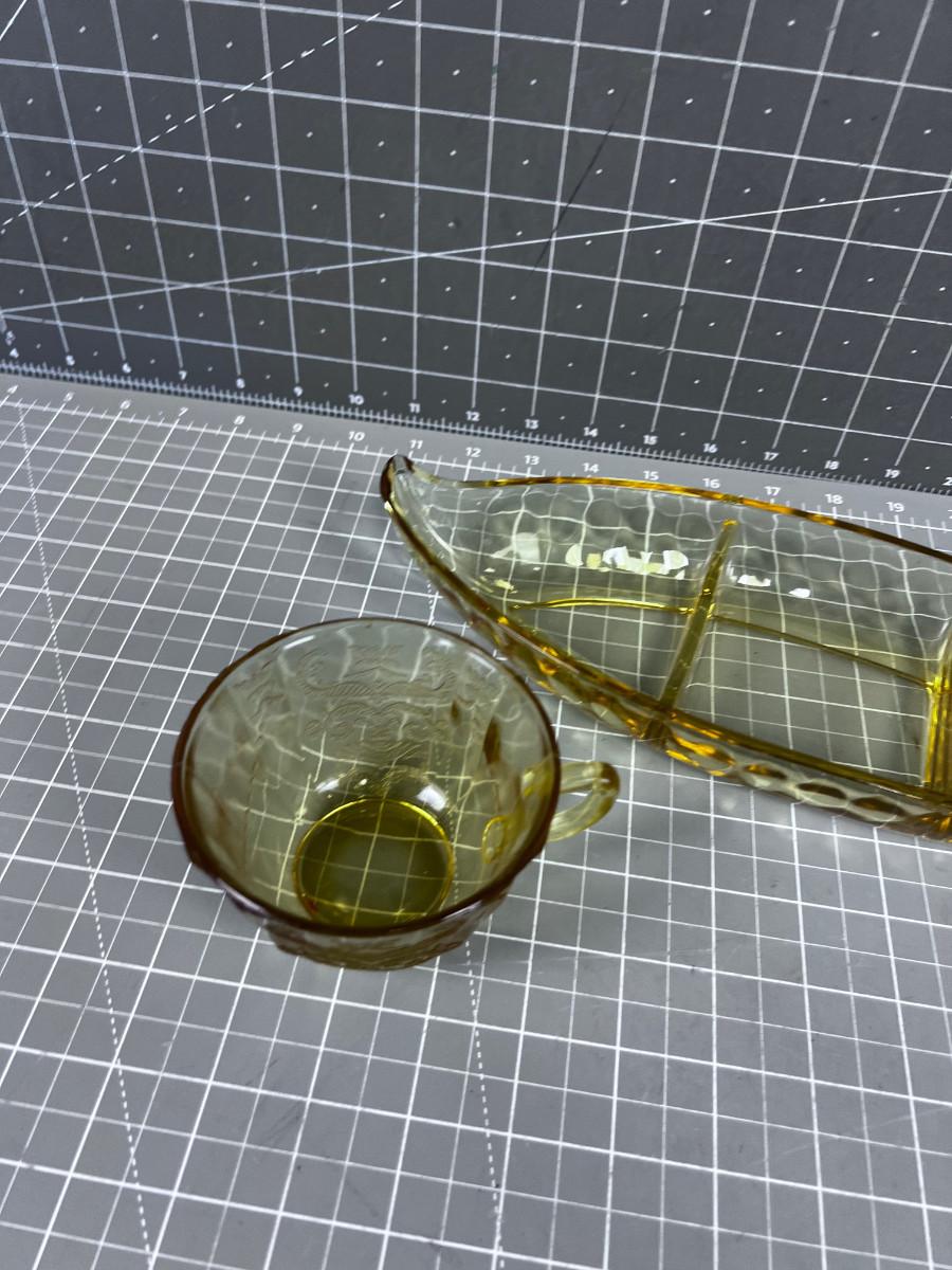 Amberware Divided Serving (some call it a relish tray) and a Cup