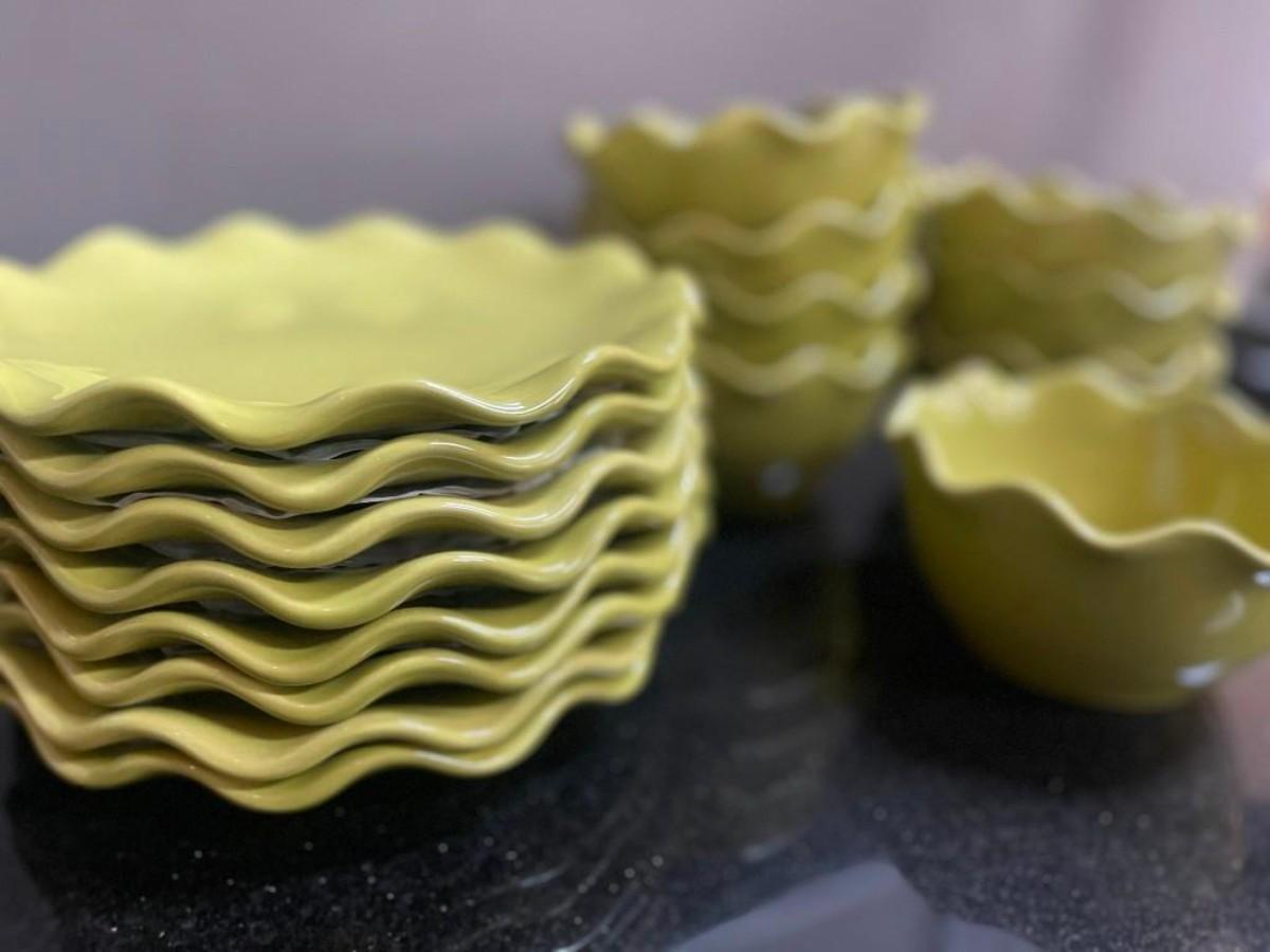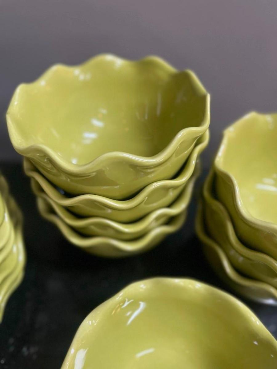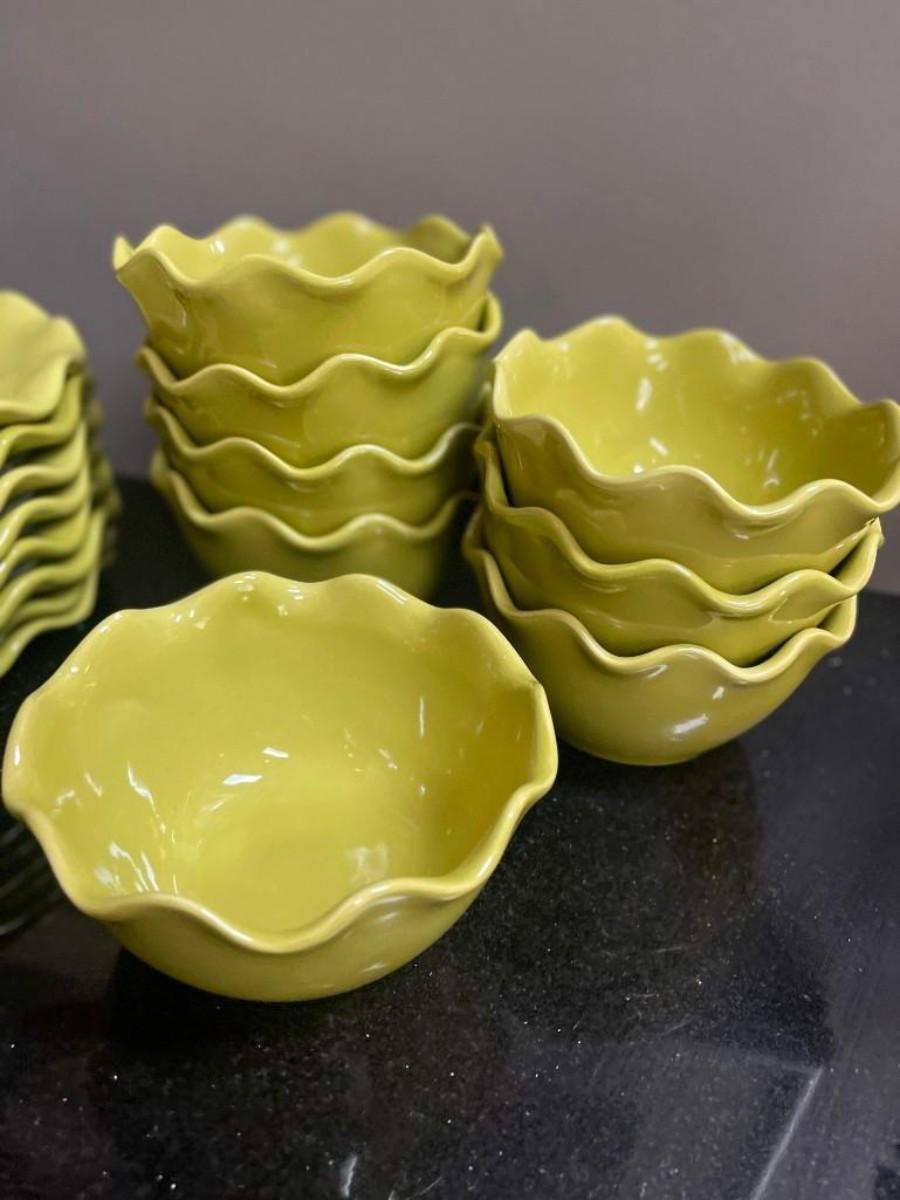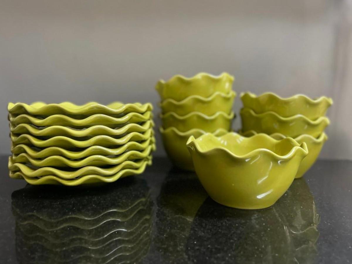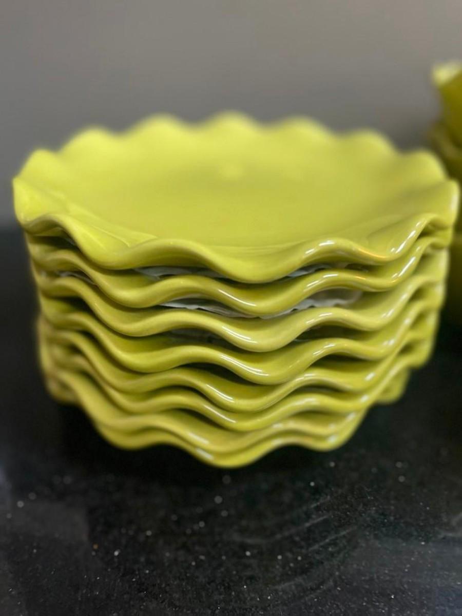 Ambiance Collection Green Ruffle Salad Plates and Bowls, 16 pieces
