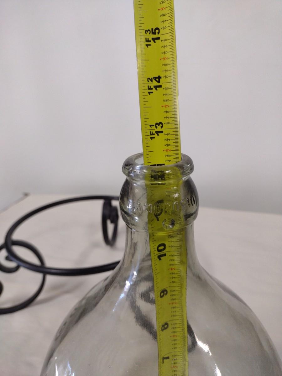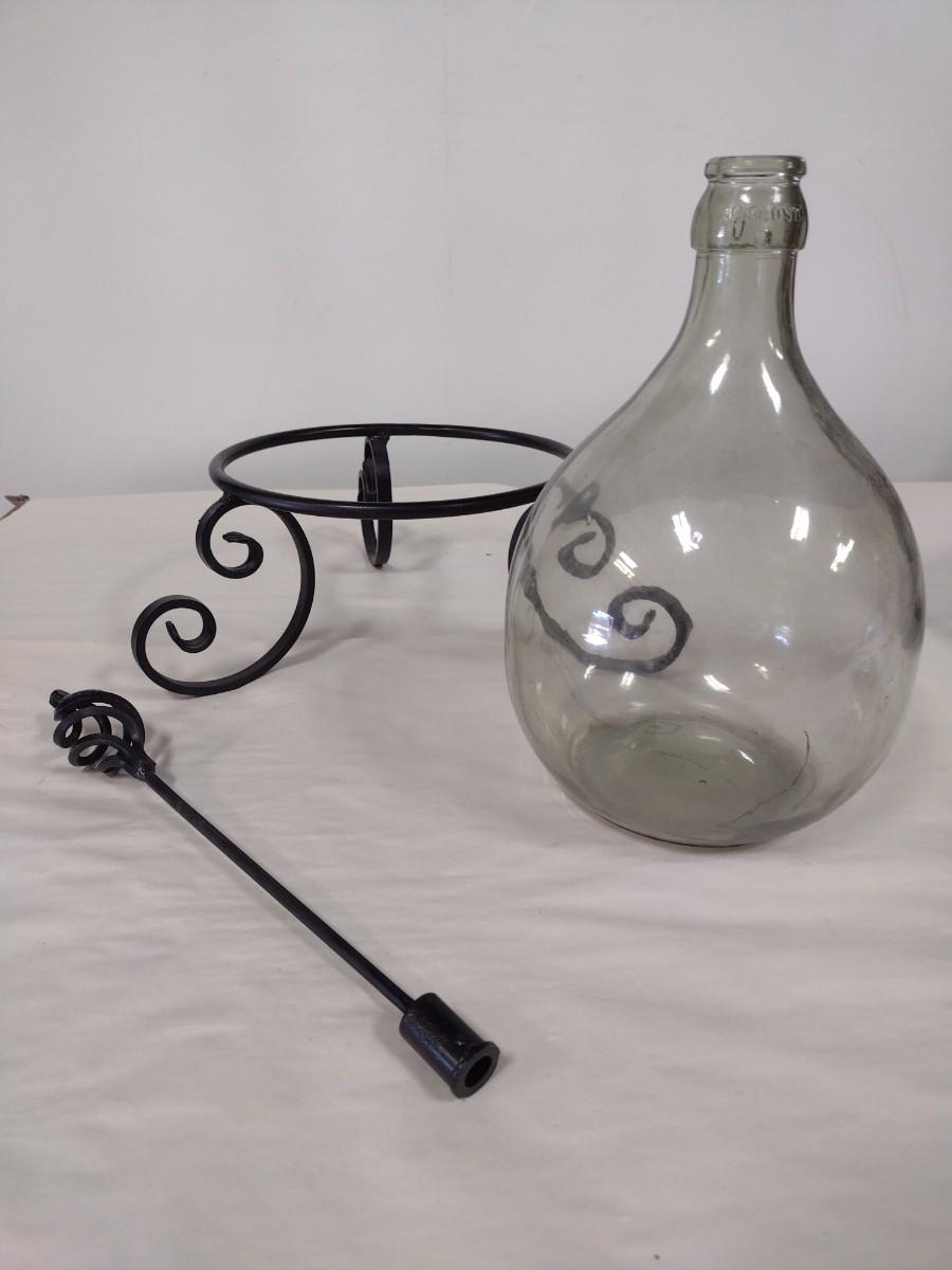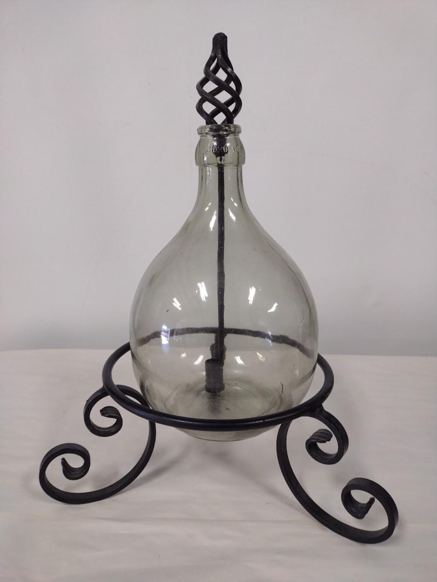 Ambrosio Glass Demijohn with Protective Basket includes Wrought Metal Stand and Candle Stick Holder