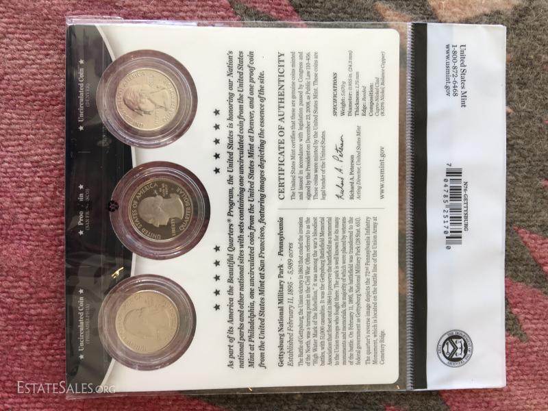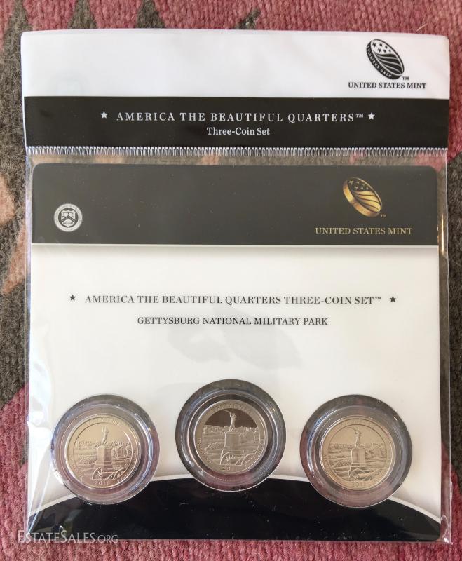 America the Beautiful sealed 3-coin set, US Quarters Gettysburg Park. Lot#78