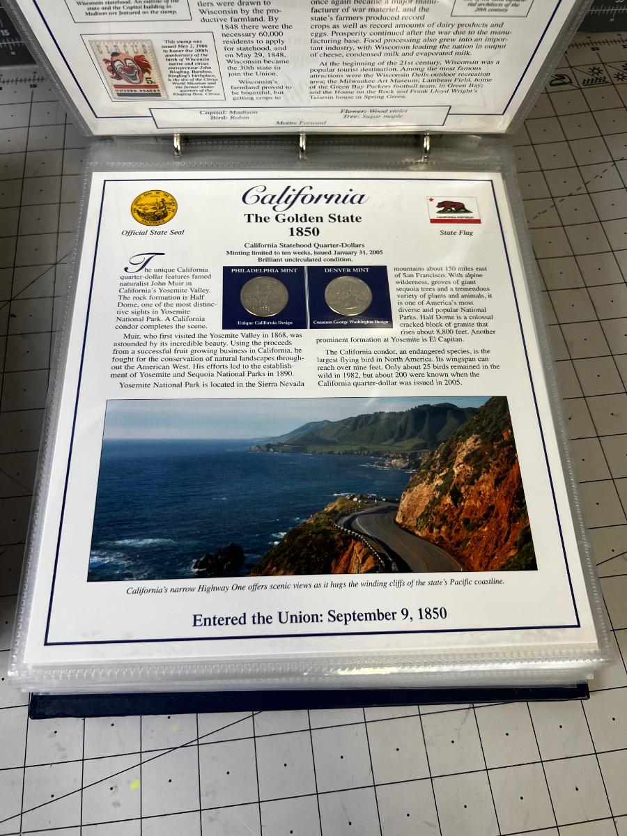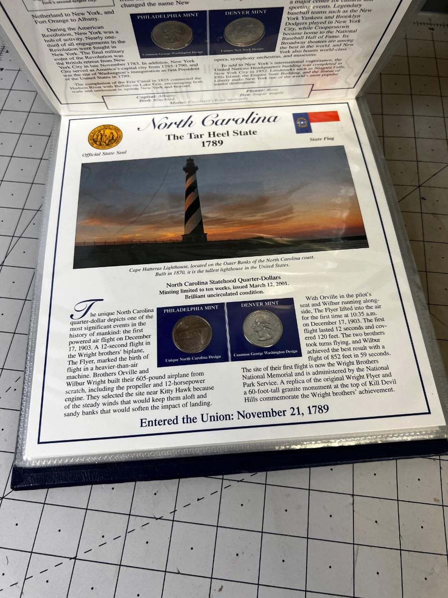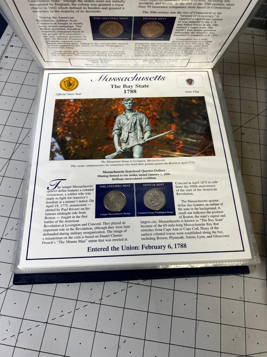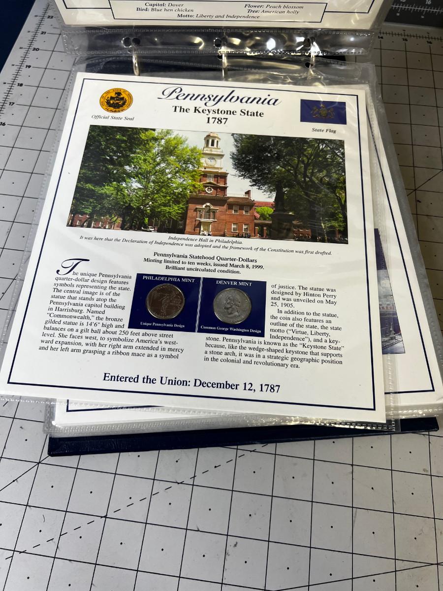 All 50 States. Complete Quarter Collection Each Page 2 Quarters uncirculated and 50 States. 2 Binders that have been Personalized with the former owner Name. SORRY!
