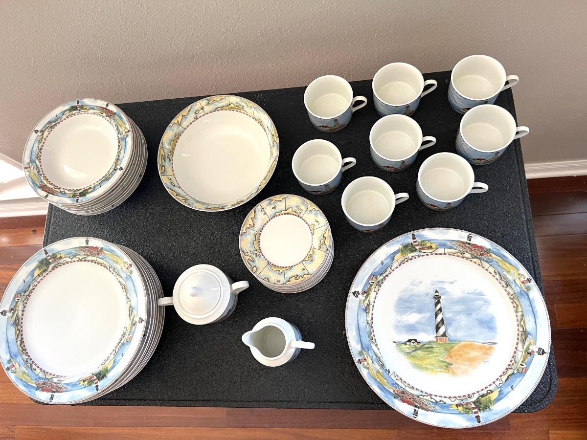 AMERICAN ATELIER NAUTICAL DISH SET Place setting for 8.