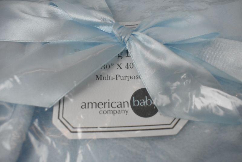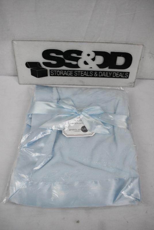 American Baby Company Fleece Blanket with 2" Satin Trim. Light Blue 30"x40" - New