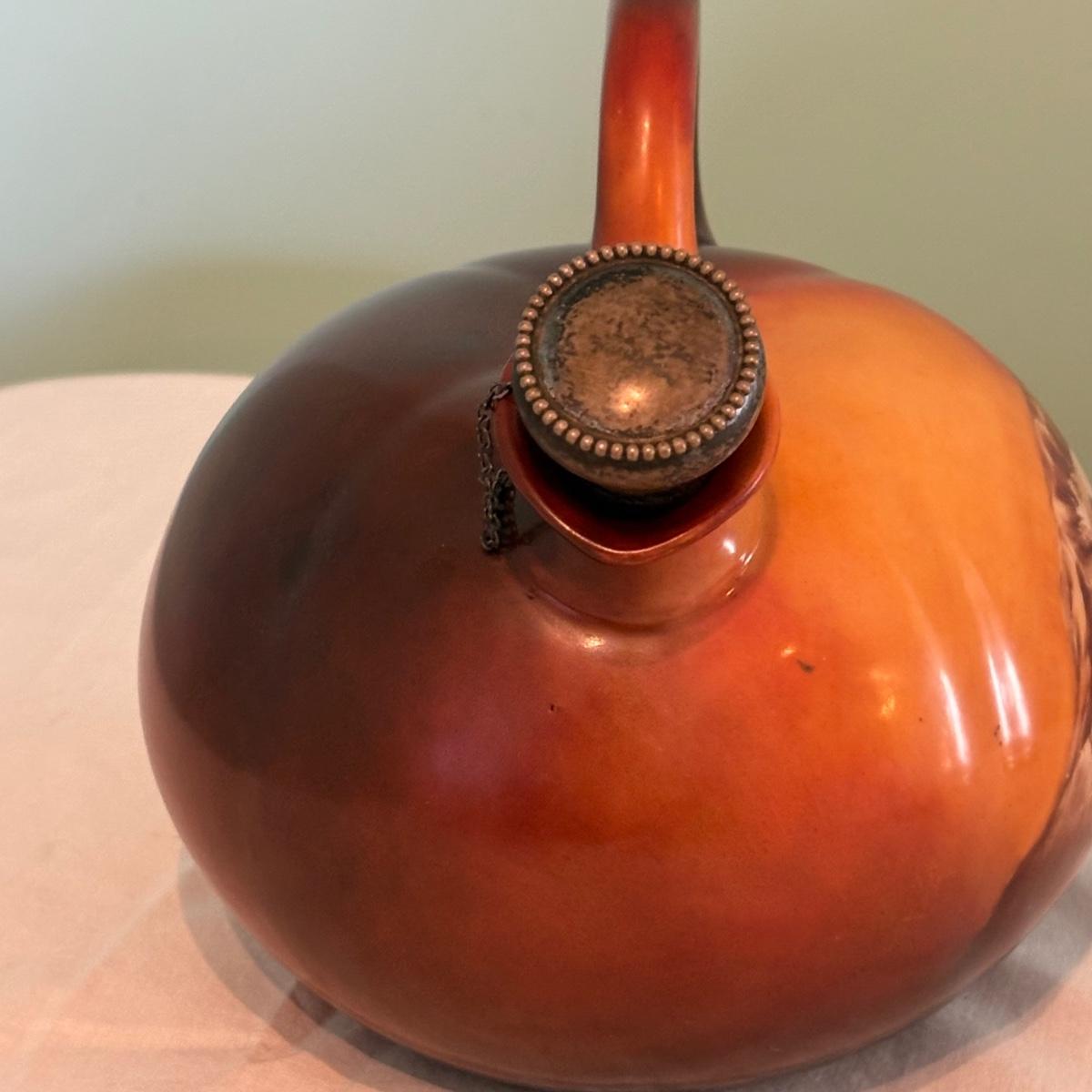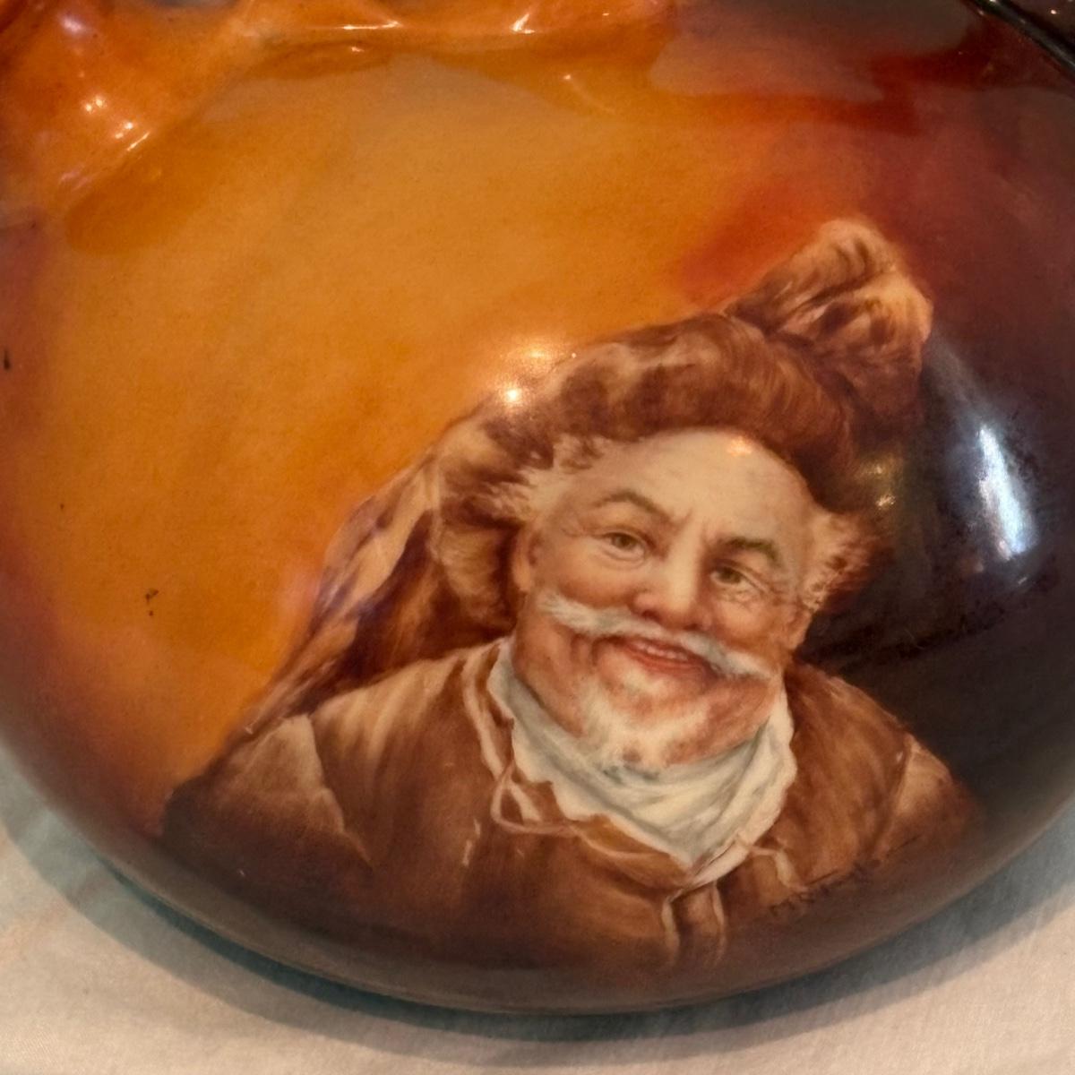 This appears to be an American Belleek Jug which measures at approximately 7" x 6" x 5.5"H. Attached to it is a a sterling topper.
