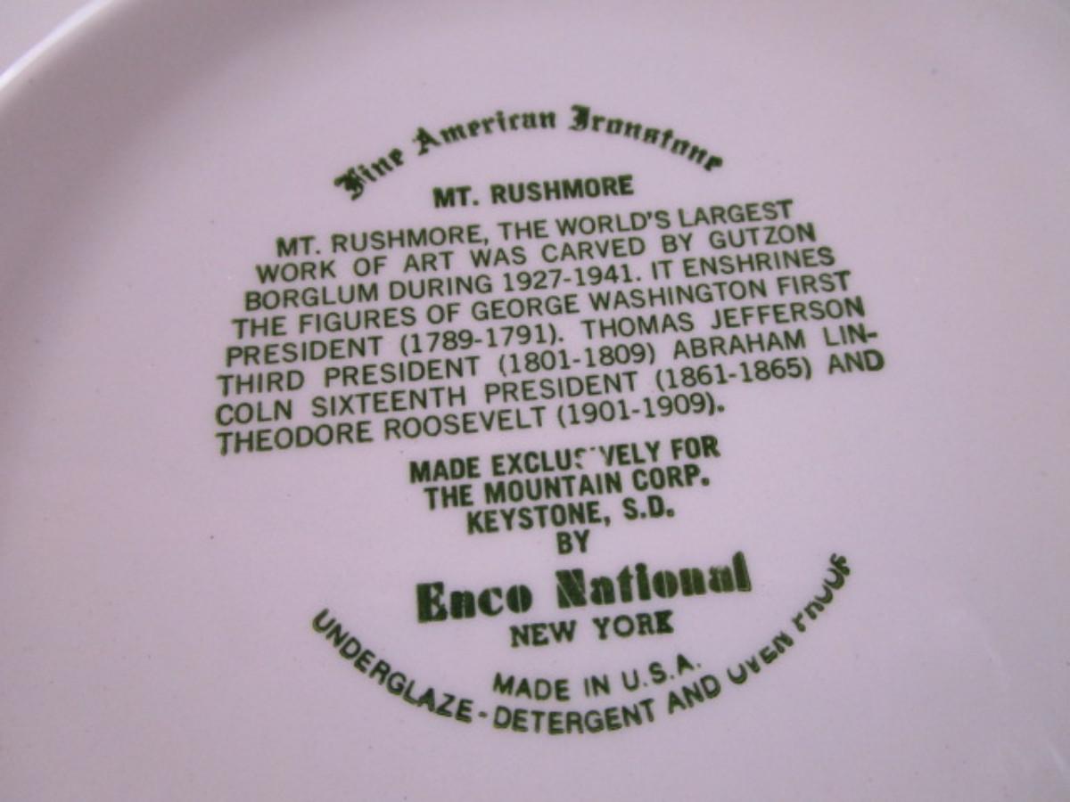 By American Ironstone 10" in diameter, has Mt Rushmore printed on the plate