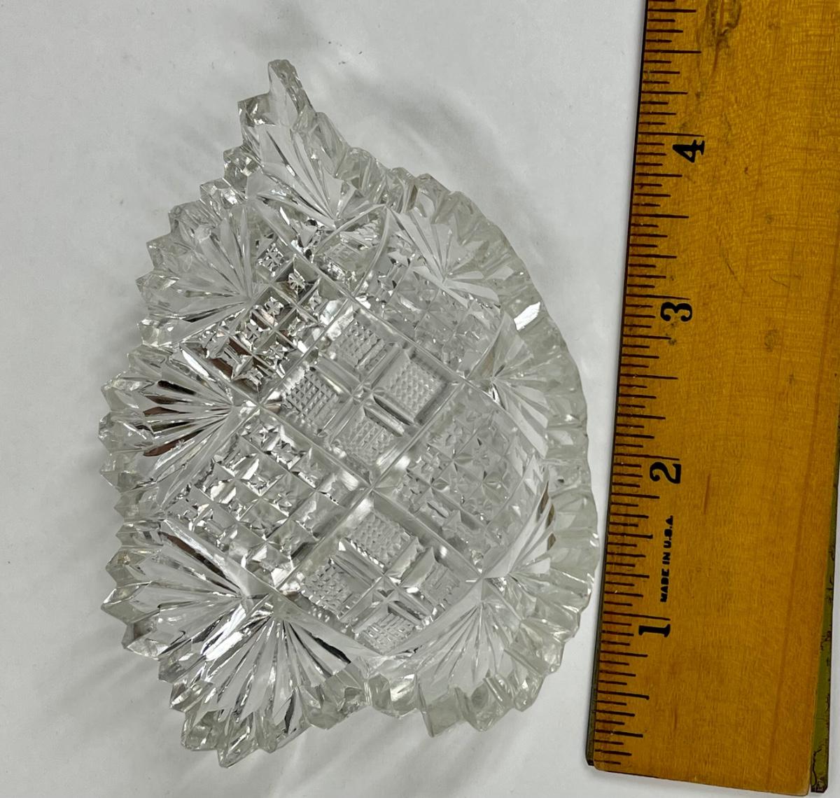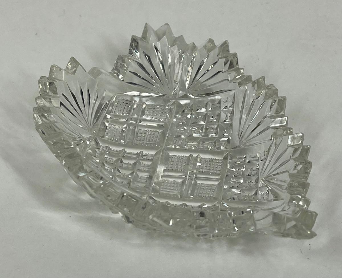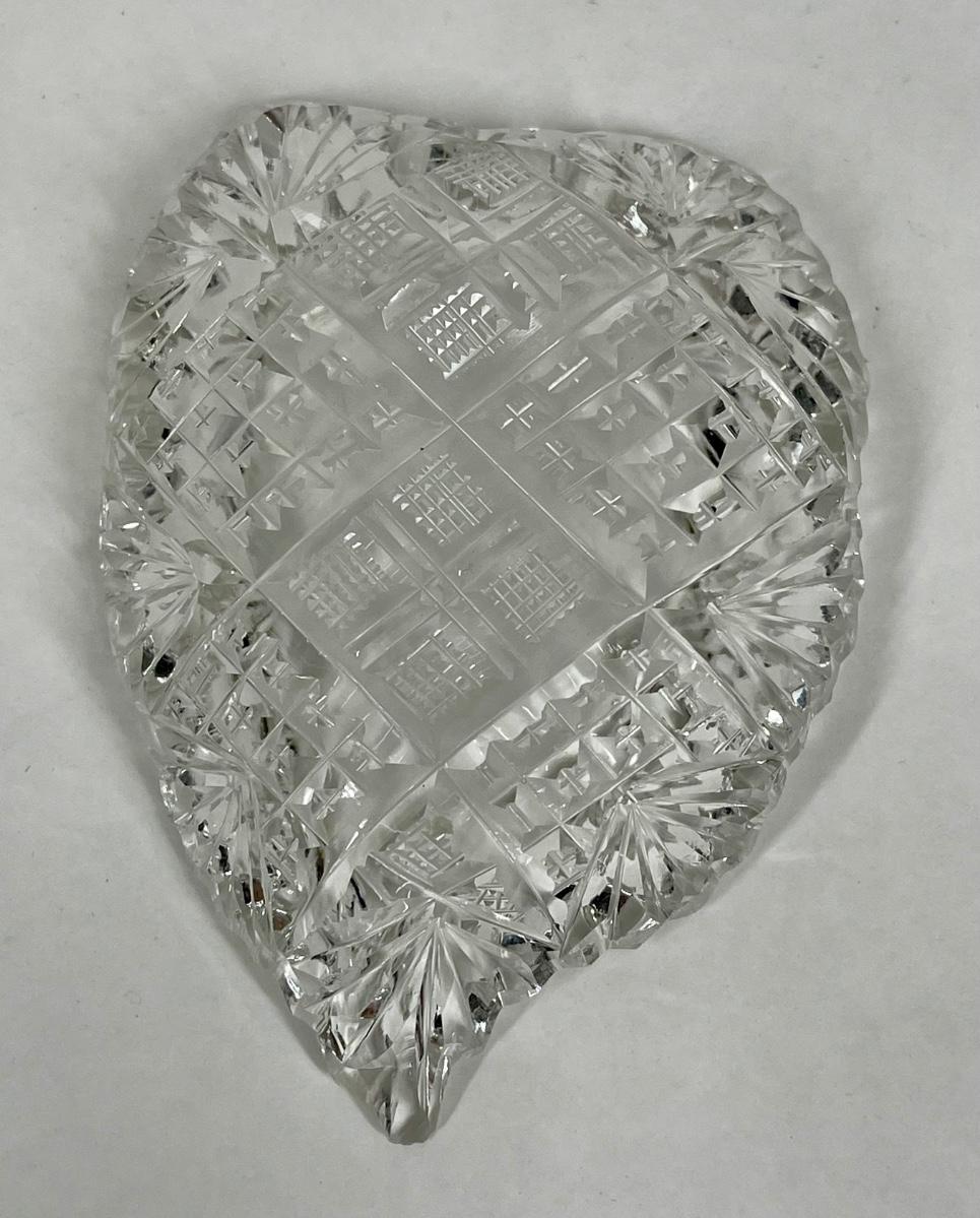 American Brilliant Cut Glass Shallow Bowl Nut Dish Leaf or Heart Shaped
