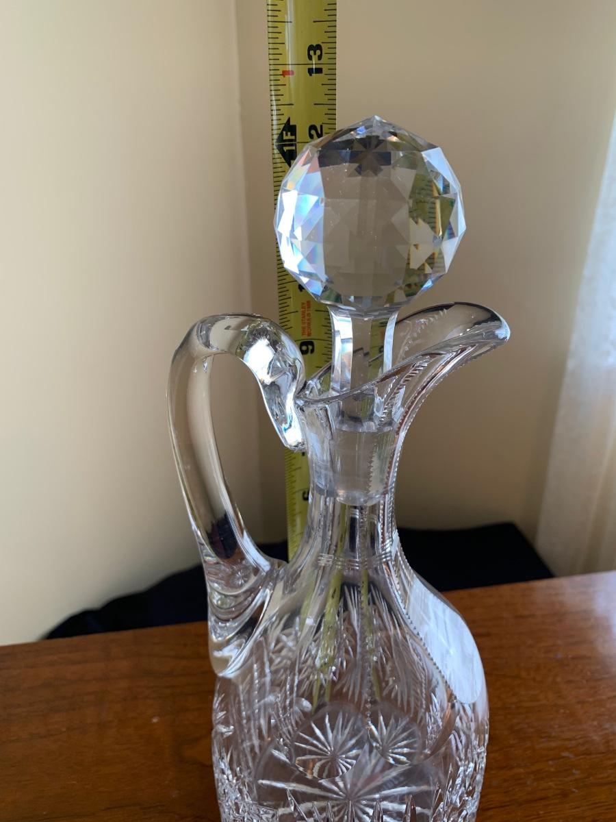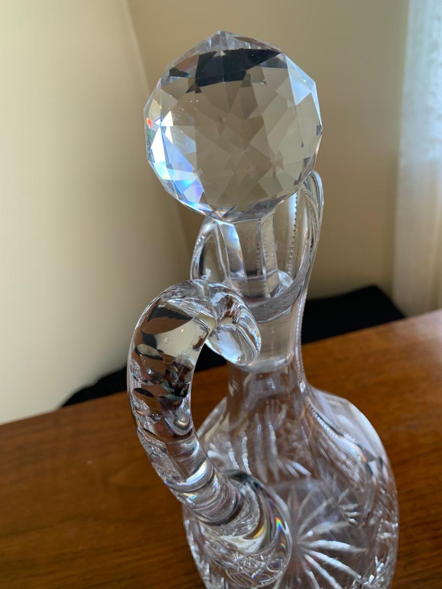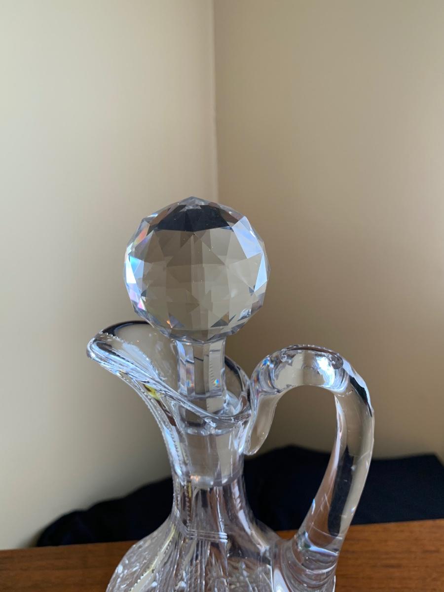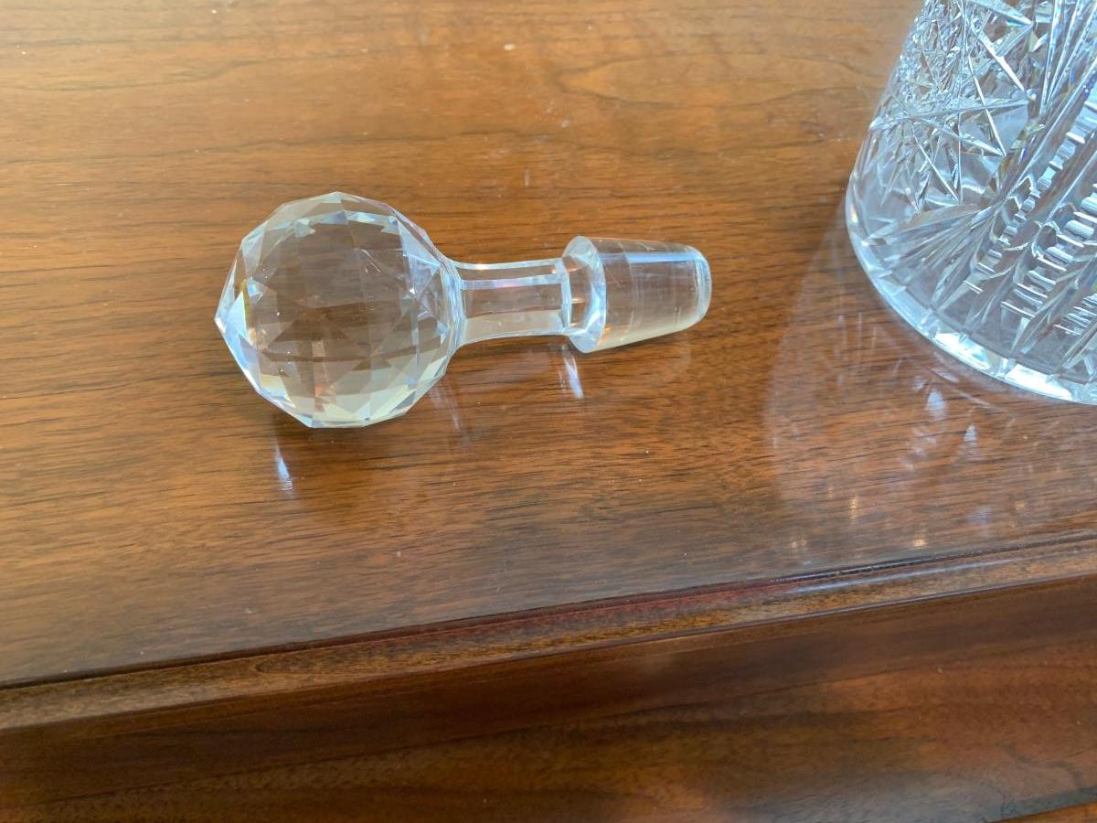 Exquisite glass decanter with multi faceted stopper. No chips.