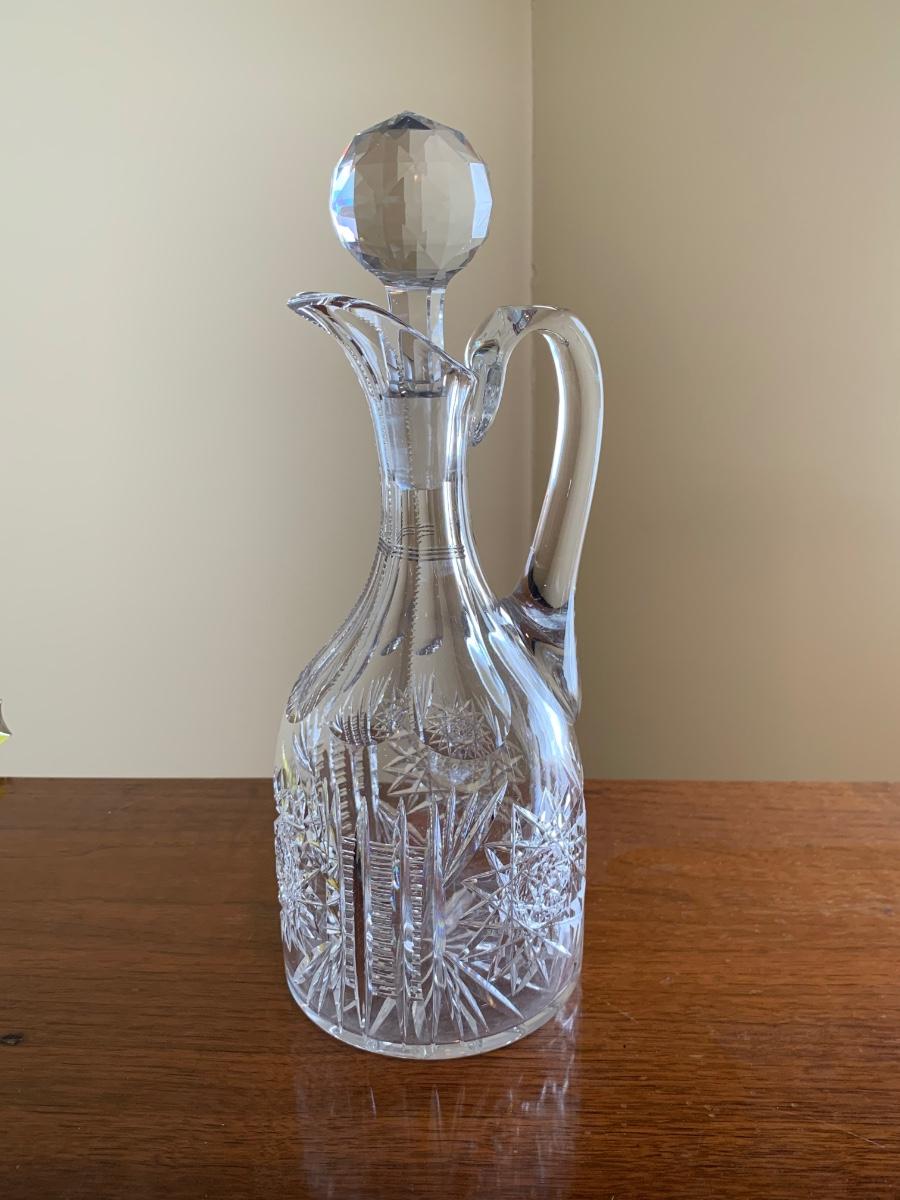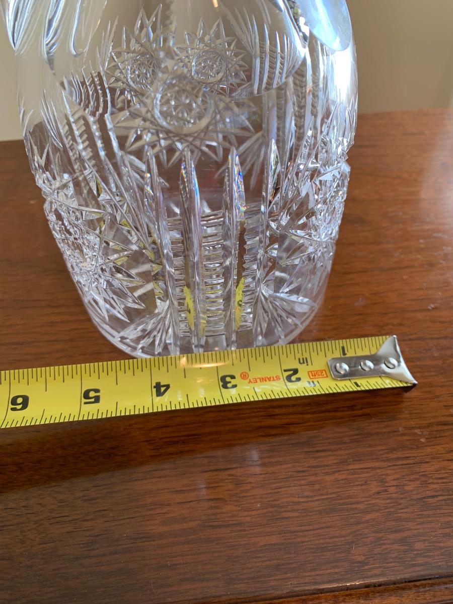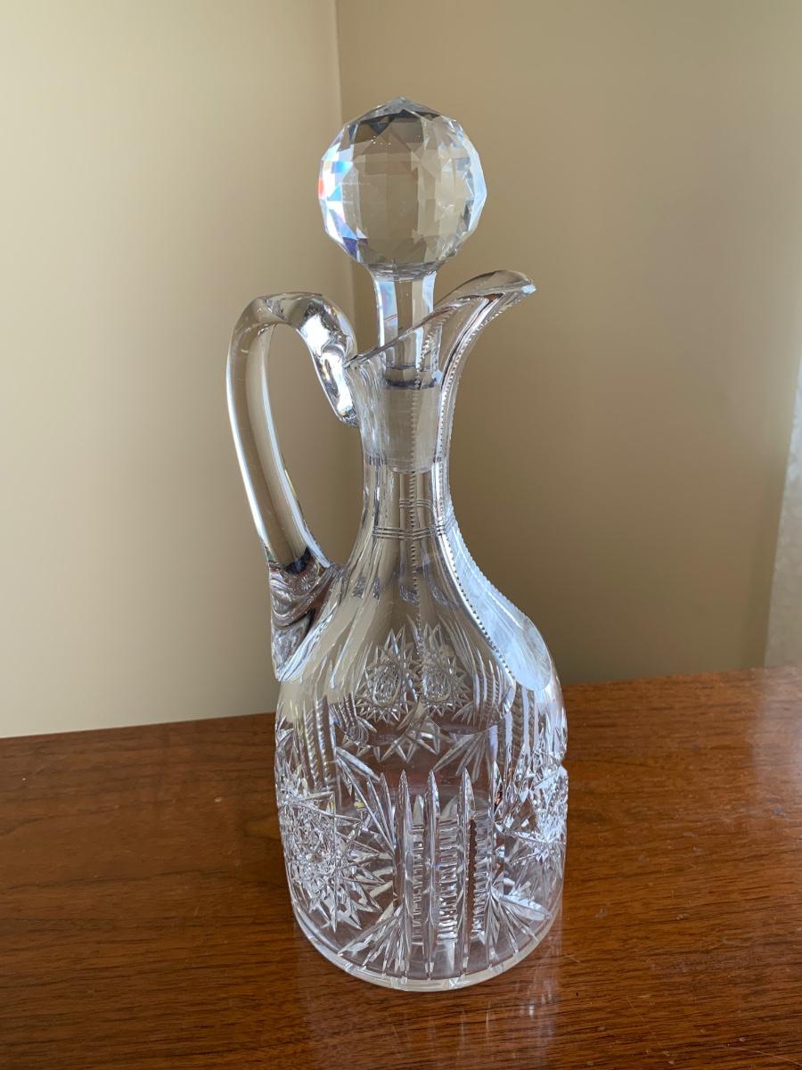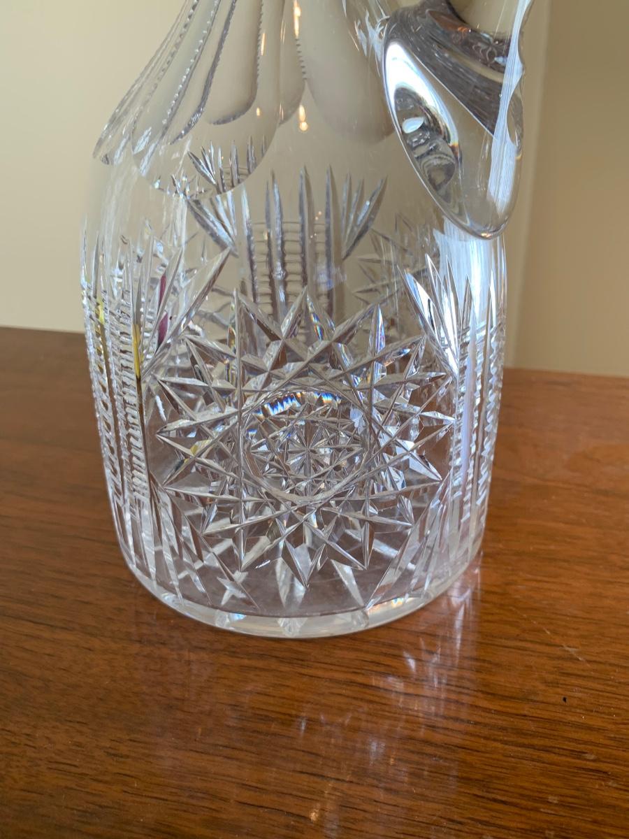 Exquisite glass decanter with multi faceted stopper. No chips.