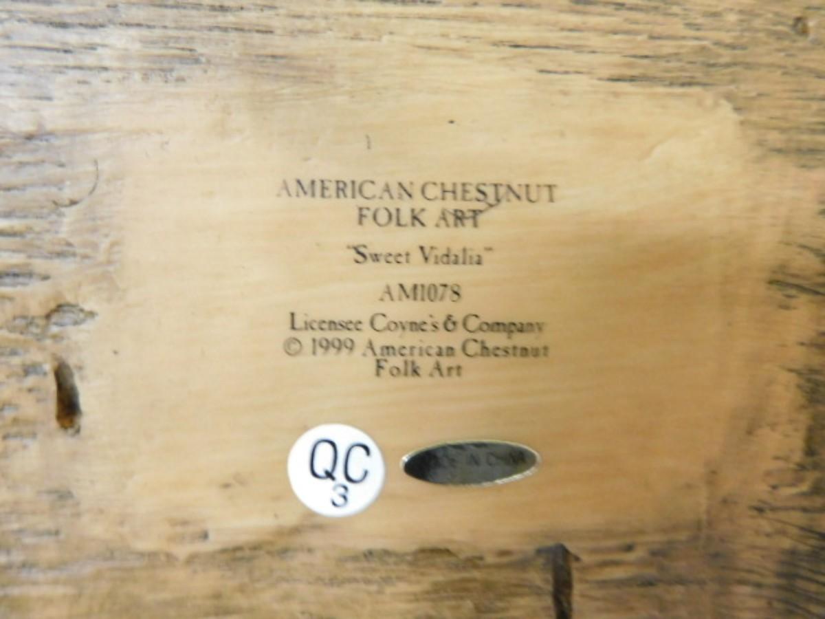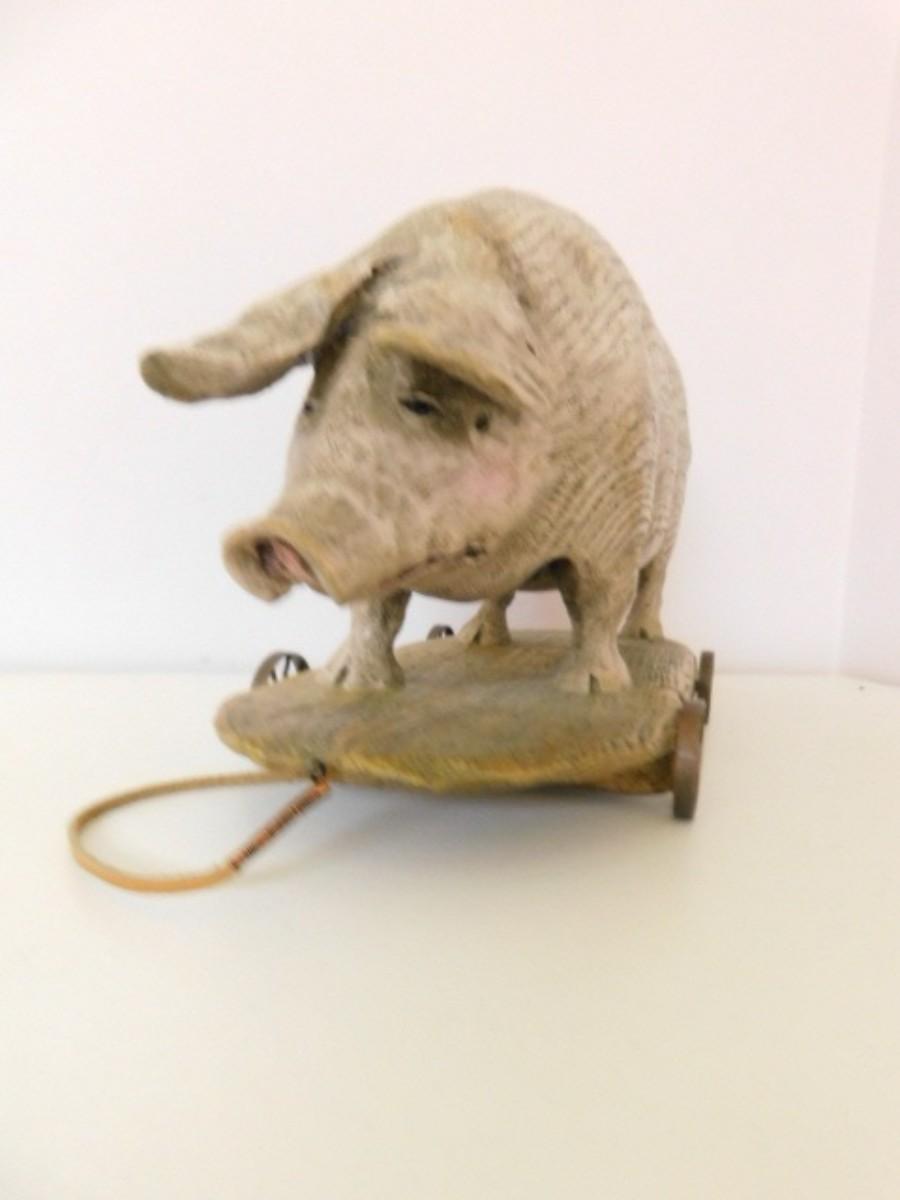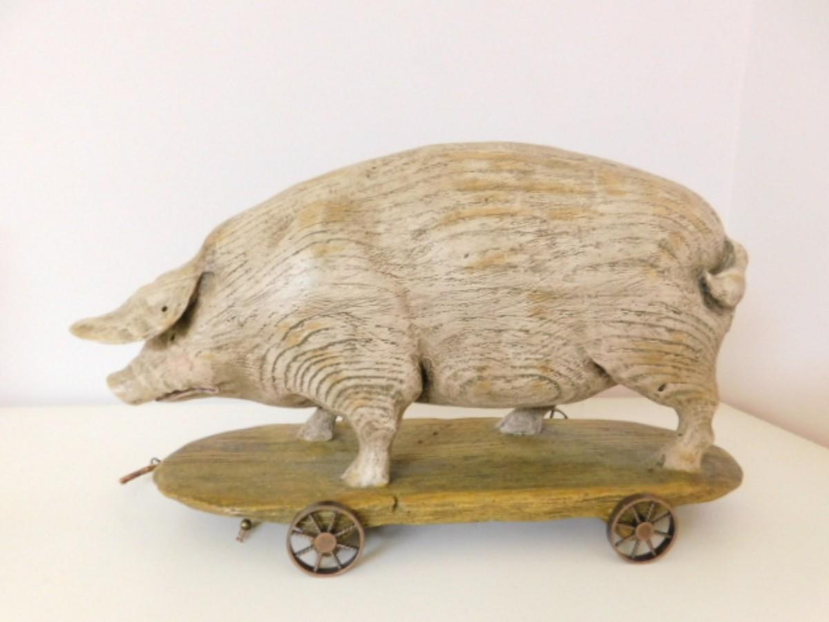 American Chestnut Folk Art 'Sweet Vadalia' Large Resin Wood Grain Finish Pig on a Pull Cart