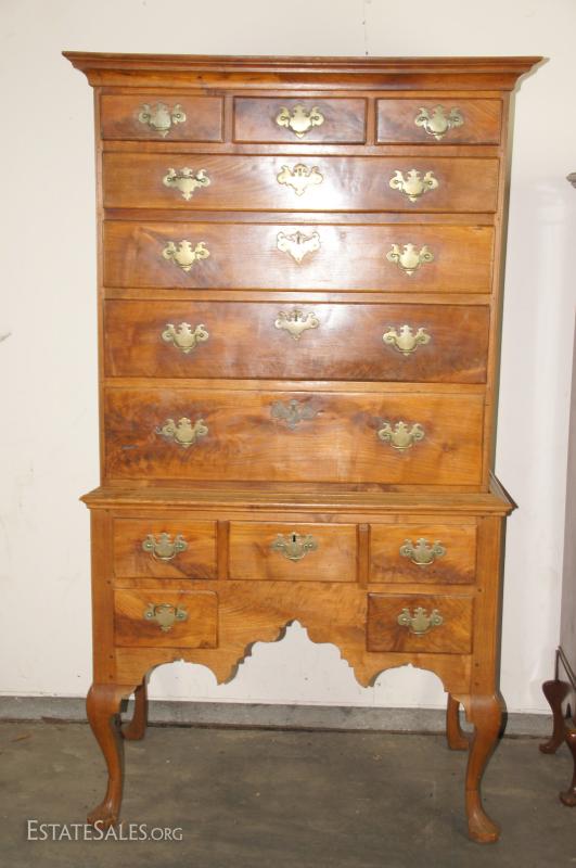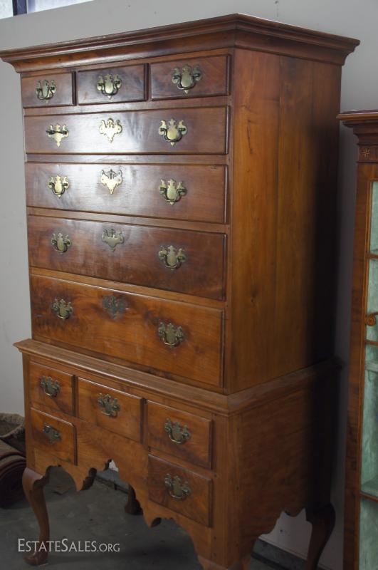 American Chippendale walnut Highboy, Pennsylvania, late 18th century, adapted, a piece was detached, but the part is still there if repair is desired