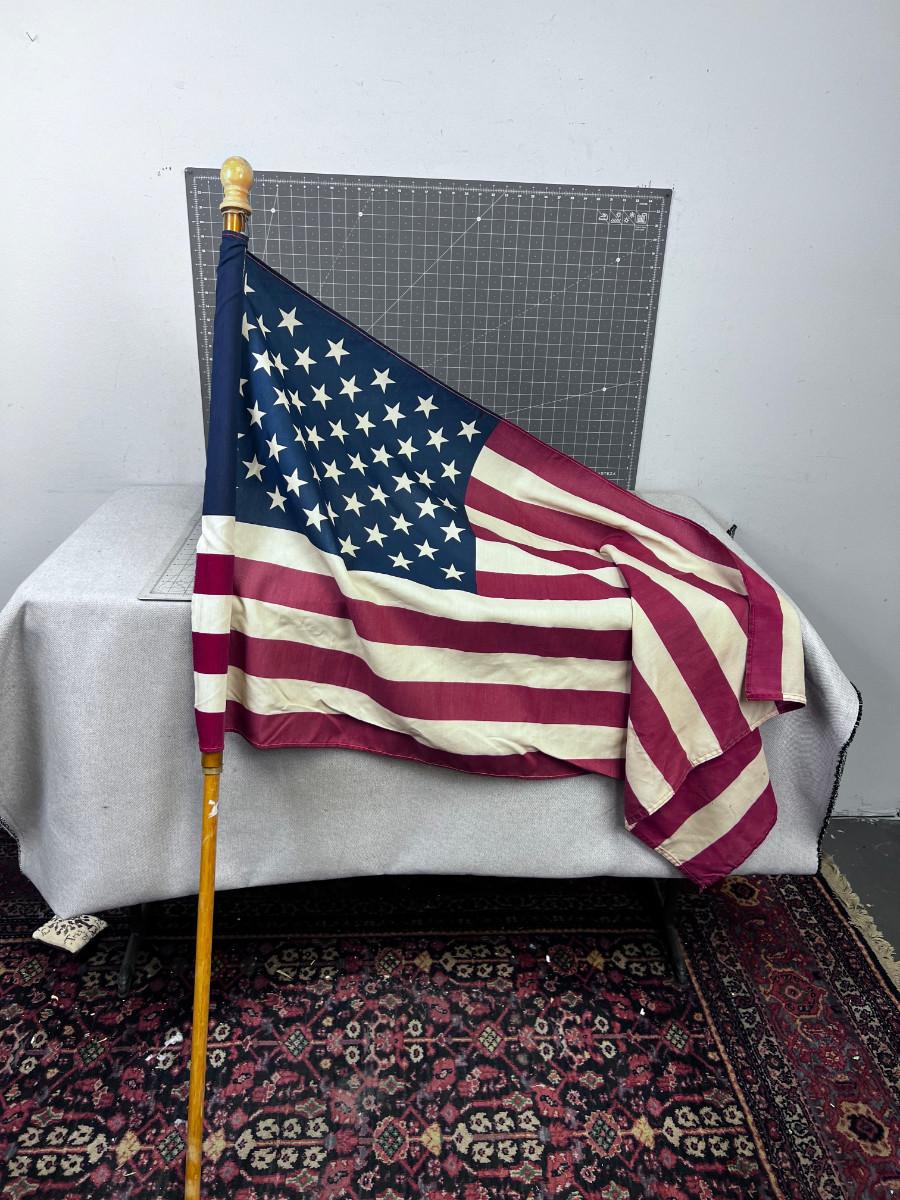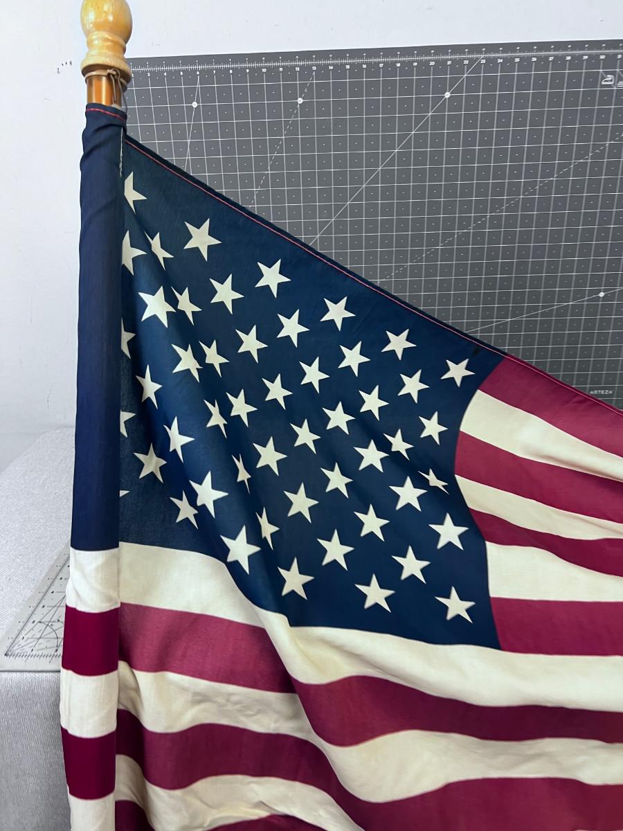 Flag Measures 3' X 5' on a pole Measures 5-1/2 feet.