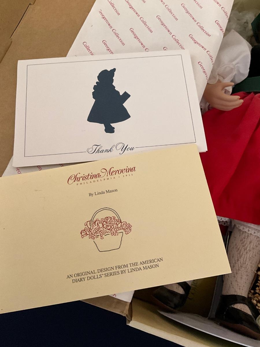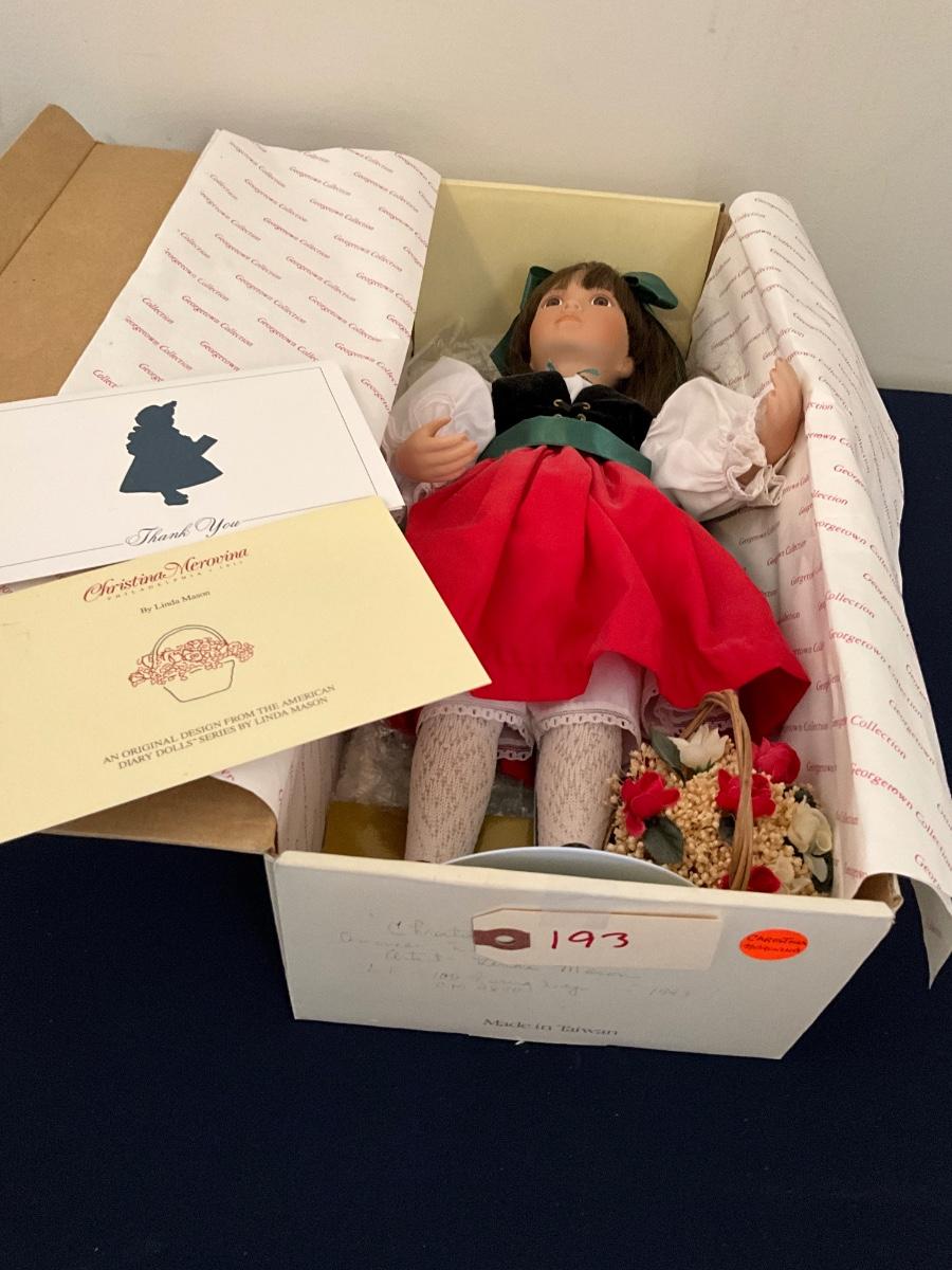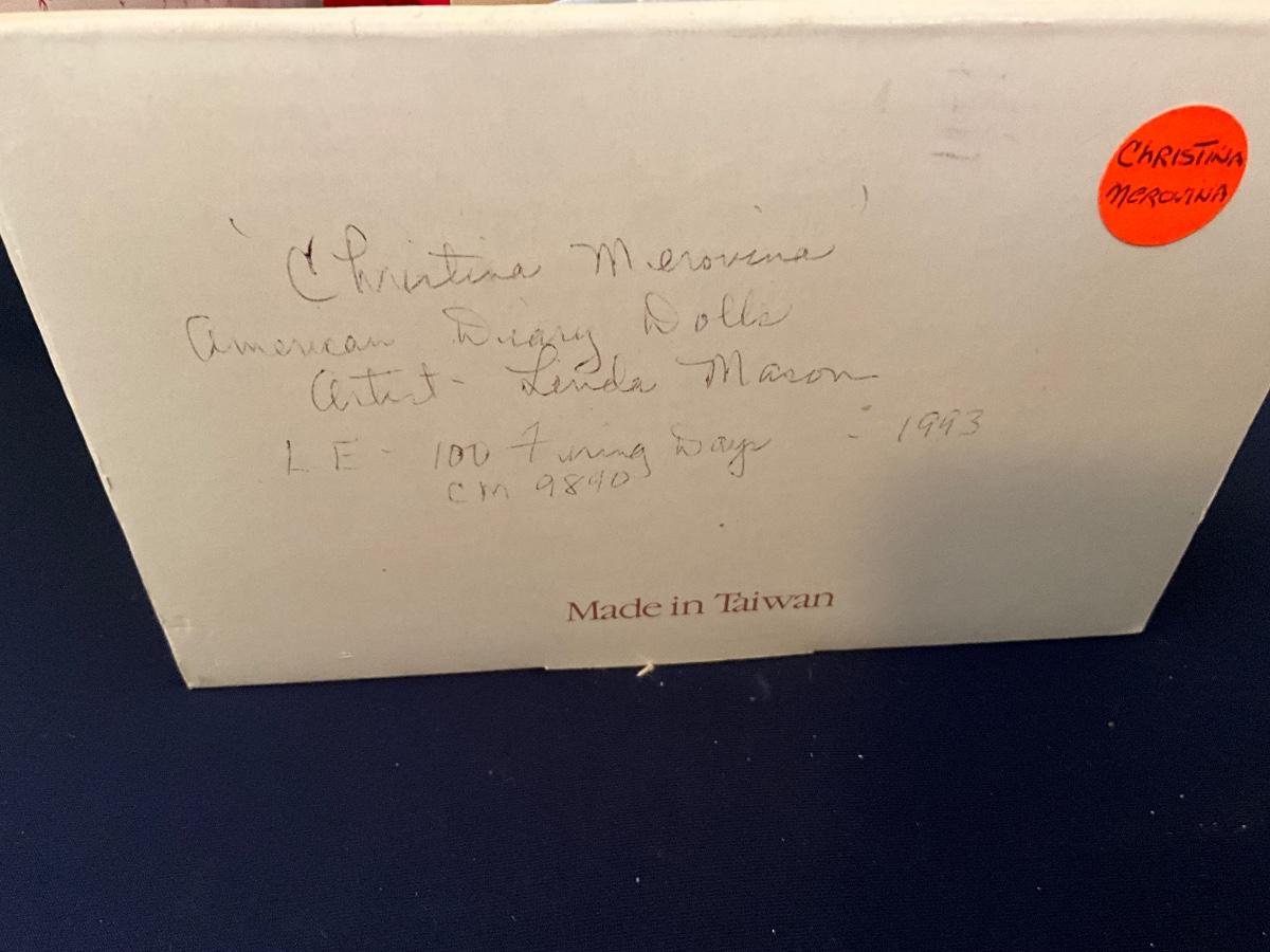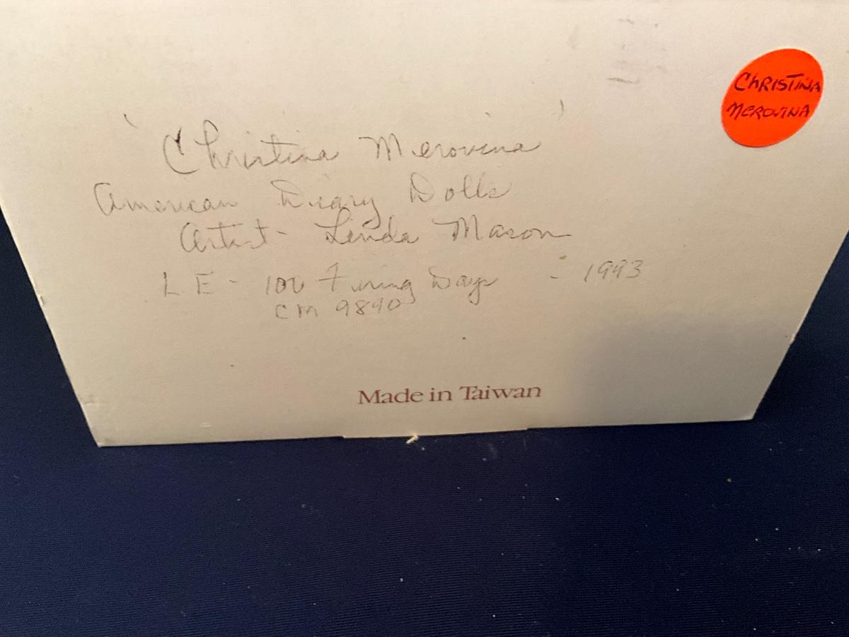 American Diary Dolls "Christina Merovina" Doll, artist Linda Maron, 100 Firing Days, CM9840, Made in Taiwan as pictured