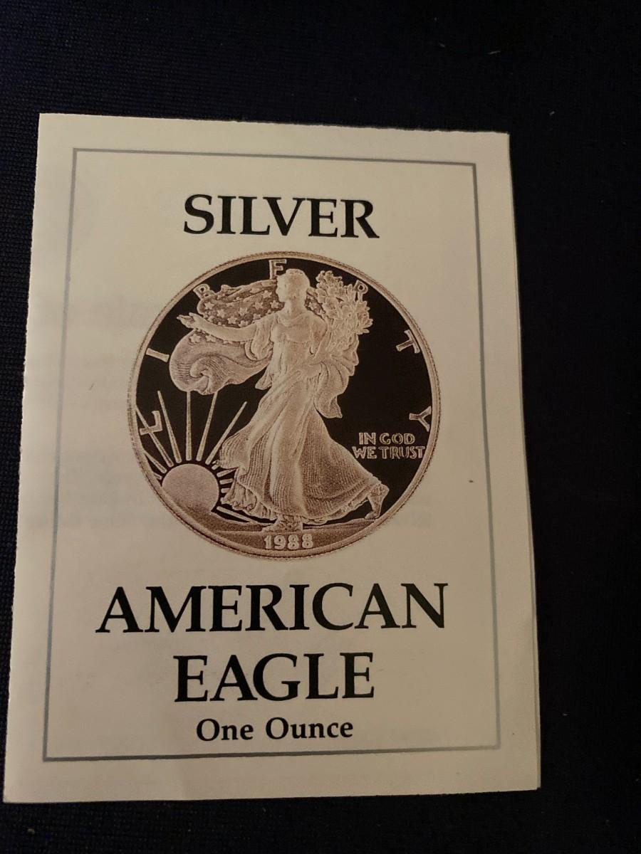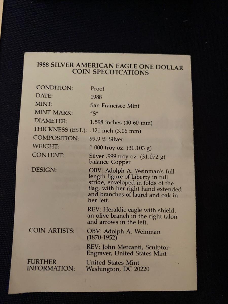 American Eagle 1 oz Proof Boullion Coin in Original Case w/ Paperwork 1988 (S)