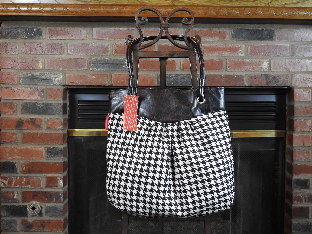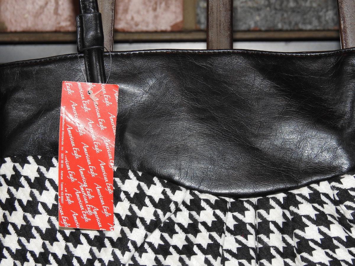 New American Eagle hounds tooth shoulder bag. Black interior. Measures approximately 15 inches wide 16 inches long with 9 inch drop. New condition.
