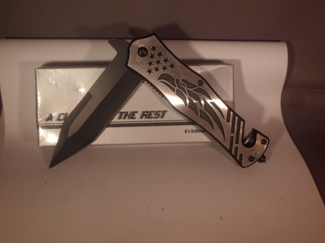 American Eagle Fold Locking Knife Seat Belt Cutter and a Belt clip.