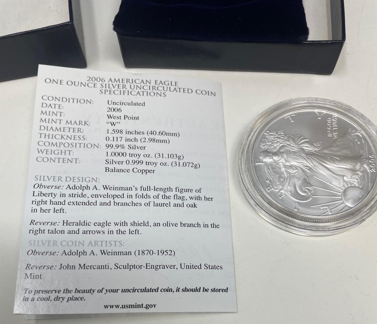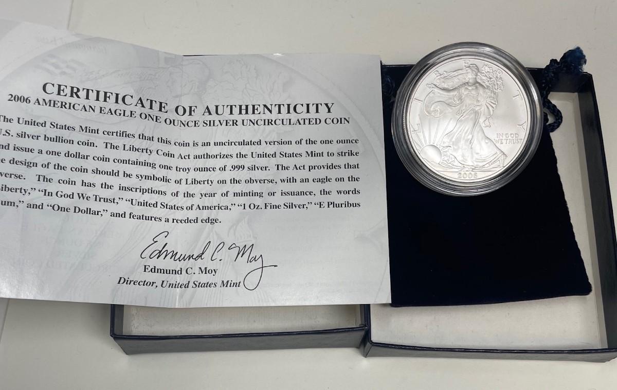 Description: American Eagle One Ounce Silver Uncirculated Coin 2006 w/ COA