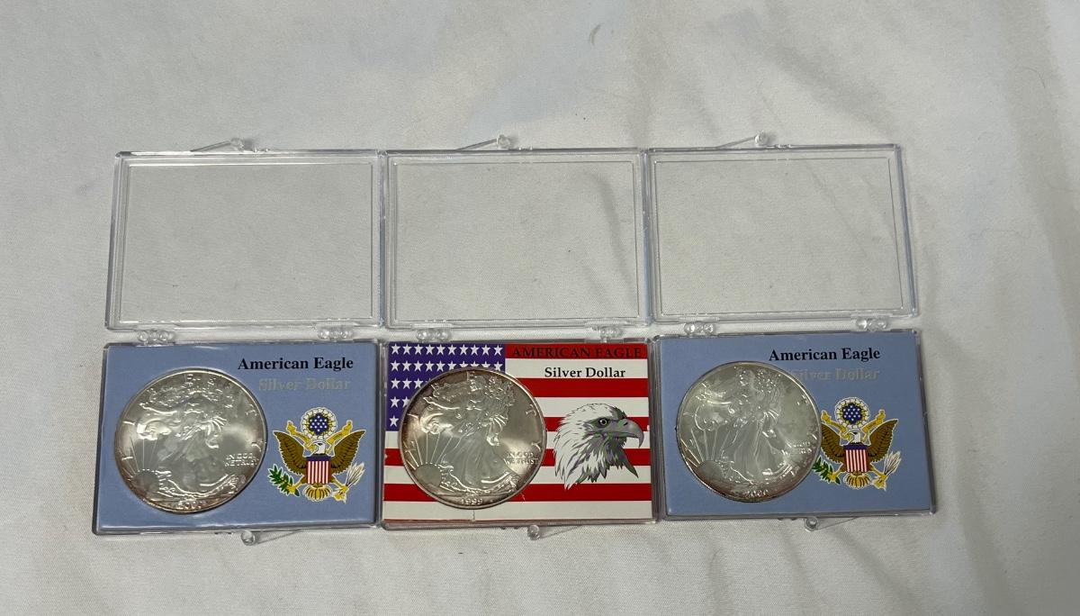 **WIRE TRANSFER IS REQUIRED IF SHIPPED.** Includes one 1999 coin, and two 2000 coins. Purity is .999. Total of 3 pieces. [ST]