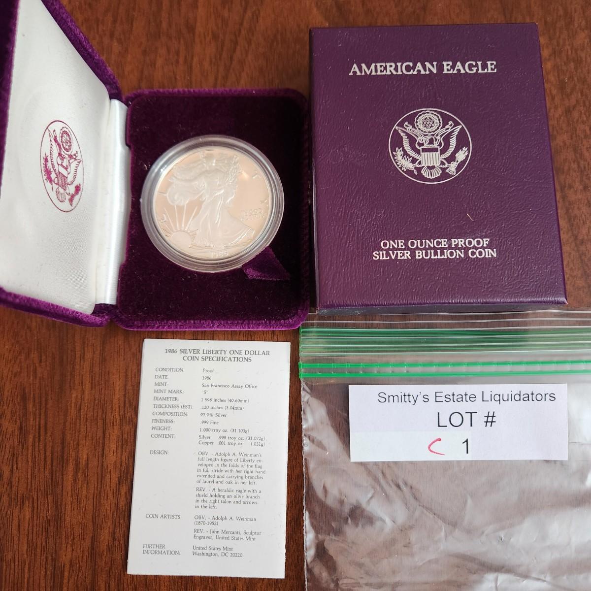 American Eagle Proof Silver Bullion Coin OGP & COA 1986 S