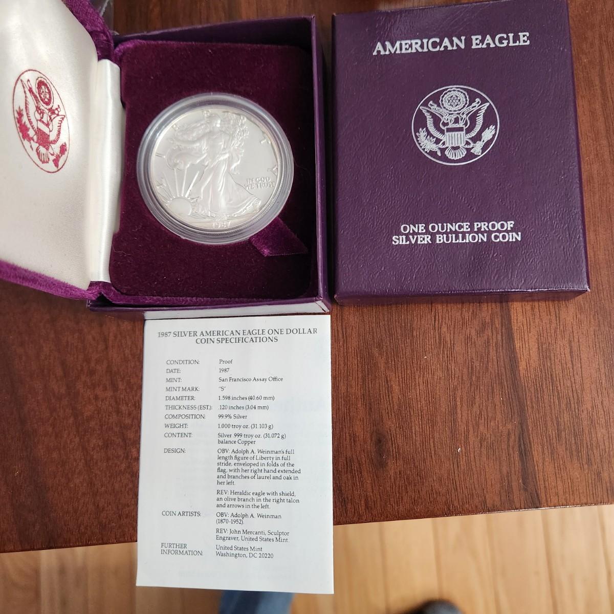 American Eagle Proof Silver Bullion Coin OGP & COA 1987 S
