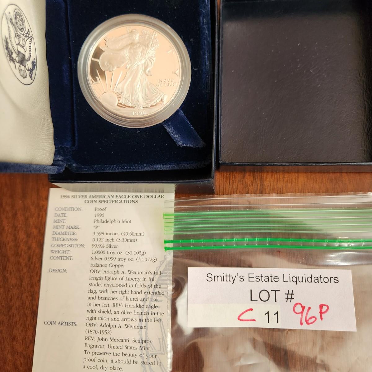American Eagle Proof Silver Bullion Coin OGP & COA 1996 P