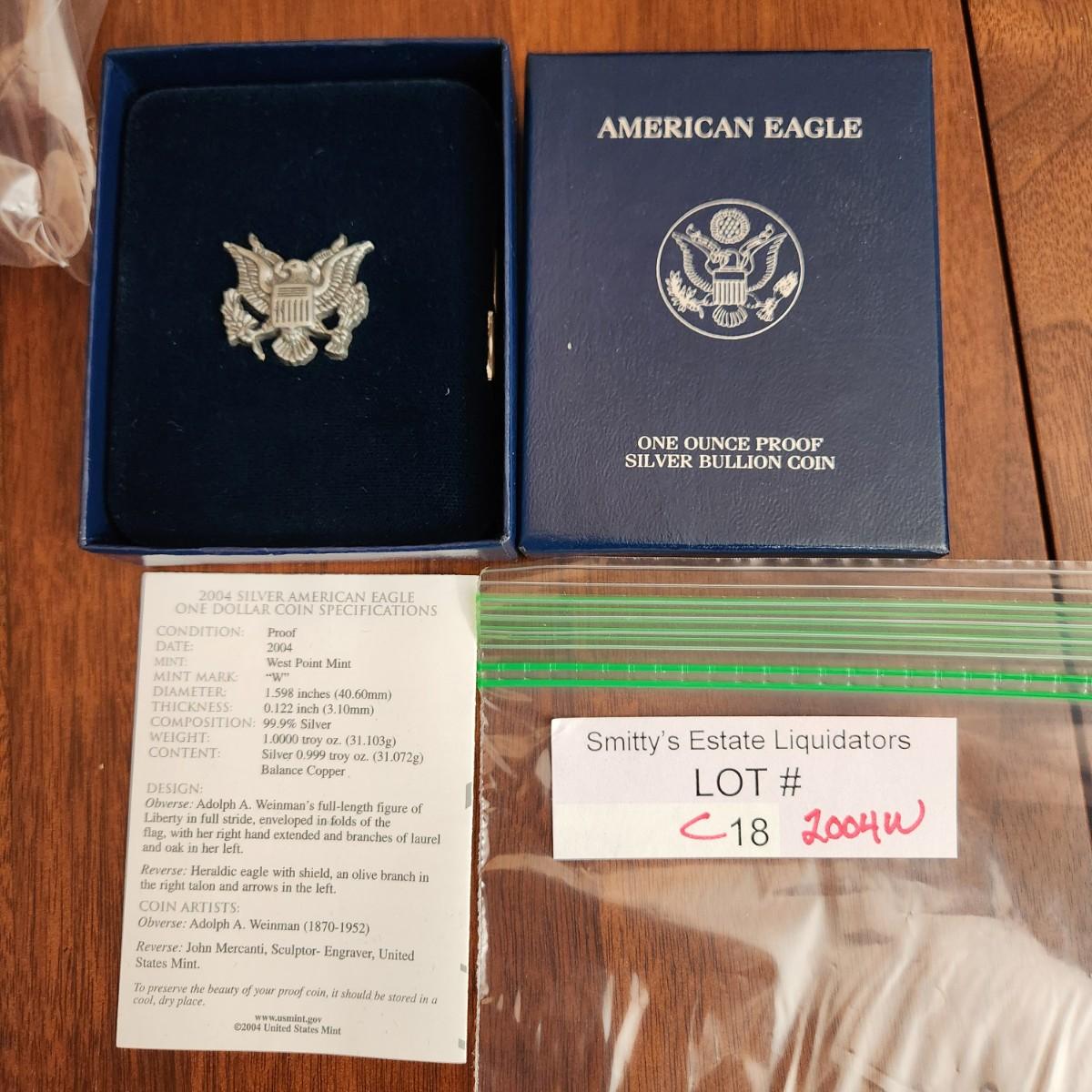 American Eagle Proof Silver Bullion Coin OGP & COA 2004 W