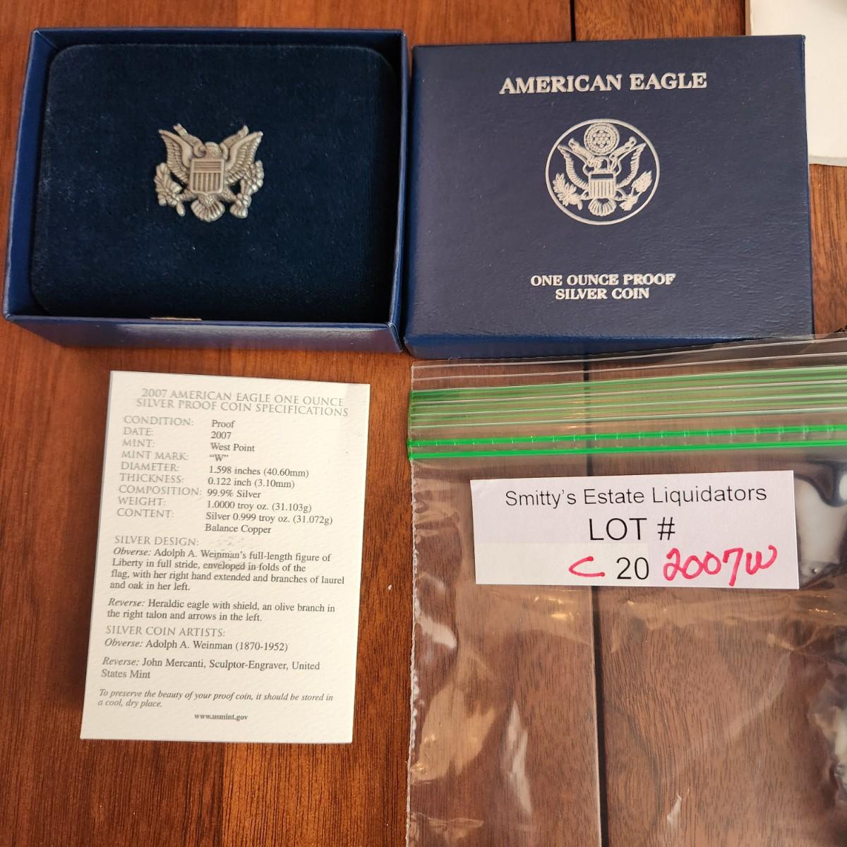American Eagle Proof Silver Bullion Coin OGP & COA 2007 W